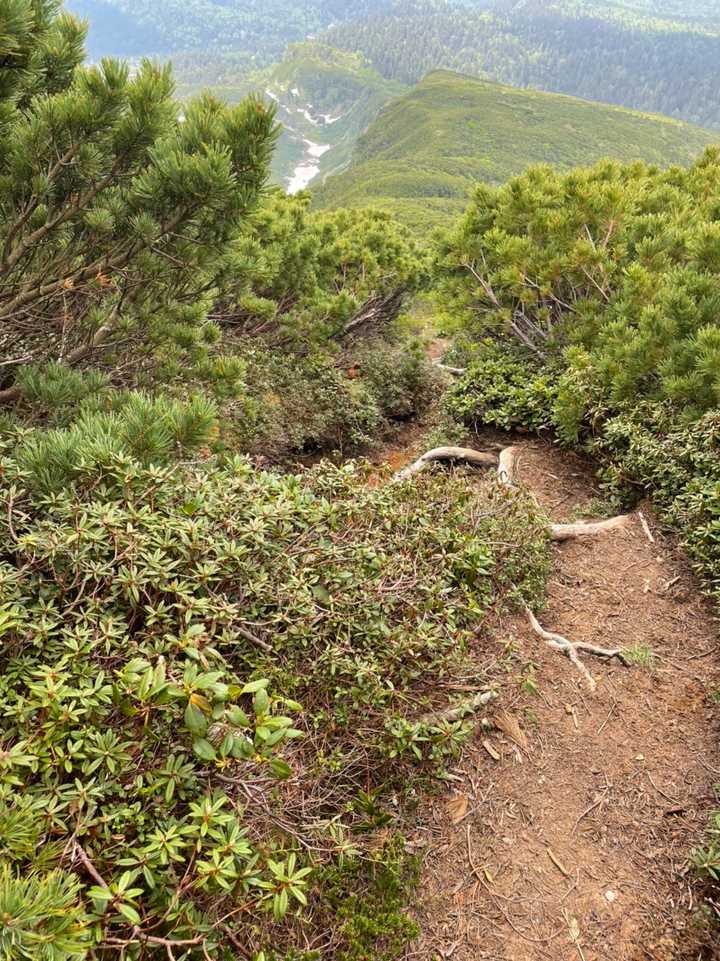 昨年の秋に開通したこのコース。2回目です。 久しぶりのソロ活です。 朝、いつもの時間にうめさんを送り出してから出発しよう。わんこ達に朝ご飯をあげたりしてたら、色々忘れそうになる。お湯とかコーヒーとか。慌てて準備してさぁ、出発🚗 ³₃ 西神楽の辺りで思い出す。あ、お風呂の道具忘れたー😩 今日はお風呂なしです。汗だくになるだろうに…マヌケだな。 登山口に着くと、もう支度してる人はいない。ちょっと遅いもんね。入山届書いてスタートですよ!登りはポール使わない予定。手足フルに使って登るぞー! 三段山分岐まではお花も無くて、淡々と歩きます。三段の沼を写真に写して、雪渓を踏み跡辿ってあるく。結構な雪渓と急登😳 ずり落ちた跡もある。あれ?こんなに雪渓残ってるの?と思いながらあるく。ポール出して滑り止めにする。5分くらい歩いたでしょうか?行き止まり。YAMAP見てみると、夏道を右にかなりズレてる。間違えたー💦戻ります。三段の沼まで戻ってよく見ると、左側にもうひとつのトレースがありました。こっちか…。危ない危ない💧 もちろん急登です。立ち止まらないでくださいって書いてあるけど、立ち止まってしまう。休んでしまう。1人とスライドした他は、後ろから話し声がするけどまだまだ登って来ない気配なので、のんびりおひとり様。無理せず登ります。しんどかったー😫 山頂に姿が見えた人は、私が山頂に着く前に下山開始したので、山頂は独り占め。でも真っ白。何にも見えないので、カップラーメンとコーヒー&おやつ食べたら下山です。 さっき話し声聞こえた人達が稜線まで登ってきました。登山道整備の人たちでした。お疲れさまです。 その後すぐ1人とスライドした以外は、誰もいない登山道を慎重に降りてきました。 三段山分岐で、多分安政火口までお散歩したと思われるご夫婦に「登ったんですか?」と声をかけられる。凄いですね!って褒められてご機嫌で帰り道を歩きました。 お風呂なしなので、そのまま帰宅。 今日はお仕事です。