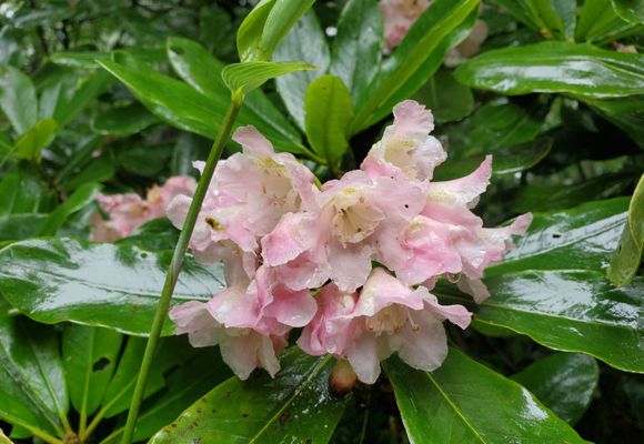 福島県の県の花ネモトシャクナゲが咲いている場所があると雨の中案内してもらい樋沼付近から探し始め1本ようやく見つけた。その後吾妻小屋に咲いていると小屋に向かうと1本の木がネモトシャクナゲ(ヤエハクサンシャクナゲ)の花を咲かせていた。シャクナゲを堪能した後は栂平園地にコバイケイソウを見に行ったが花は終わりかけていたがまだ見れた。駐車場に戻ると雨は上がり青空も出てきていた!