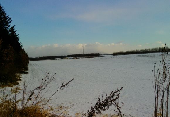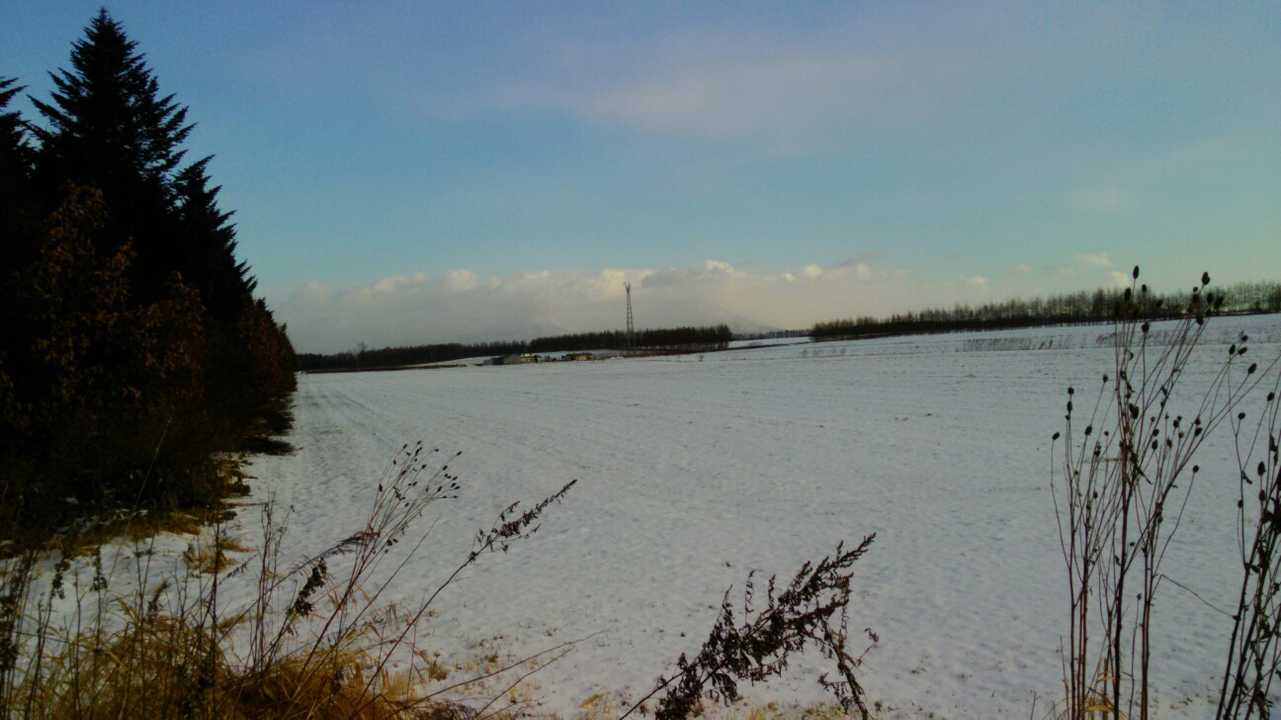 風が強く雪も時折ちらつく。気温も氷点下で、風の影響で体感気温は-6~7° コースの雪は消えているので、ジョギングシューズで久しぶりの往復コース。 復路をRUNで・・。気温は氷点下でもすぐに汗ばんでくる。