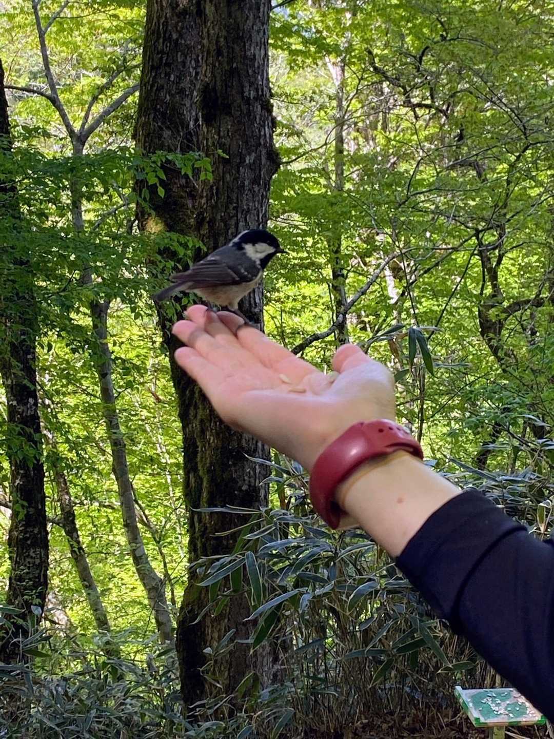 GW最終日は金剛山へ。 山飯🍙🍚するのとヤマガラちゃんに会いますよ🐦 登山口にあるお豆腐屋さんで豆乳杏仁を買ってSTART😊 ツツジオルートを進みます。冬に氷瀑❄見に来た時もこの道を言ったけど、季節が違うと景色もちがうなぁ🌿 あっという間に山頂着いて、ライブカメラに映りましたよー今回は、ちゃんとカメラ目線(笑) そのまま移動して山飯始めます😁 私の献立はは豆ご飯、鶏肉のソテー、野菜炒めです。 それぞれ作ったものを分け合ったので、お腹いっぱいなりました😆人数がいるといろんなものが食べられるものがいいね🍲 ご飯の後はヤマガラちゃんに会いに❣ 鳩がいたためなかなか来てくれず🐦 諦めてちはや園地、しゃくなげの路を進みピークもGET🏔✨ また山頂に戻り、あまおうソフト🍦をたべて大道ルートで下山しました。 お天気にも恵まれ、楽しい一日となりました。 次はポップコーン🍿お見舞いします😆