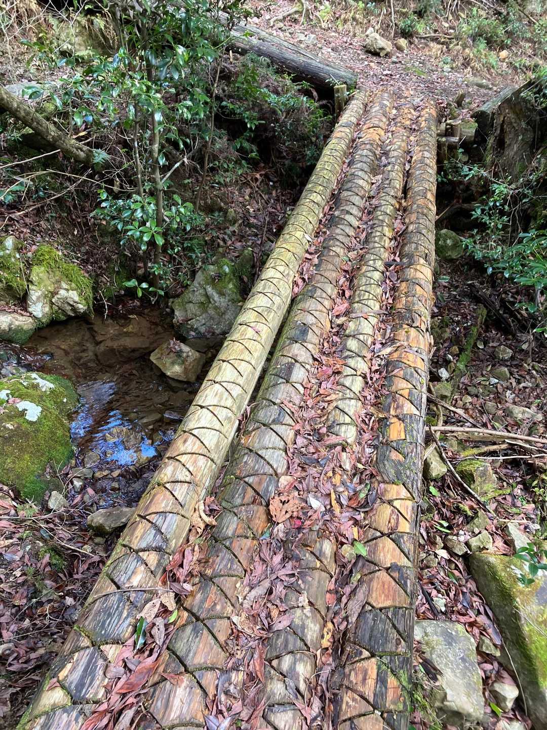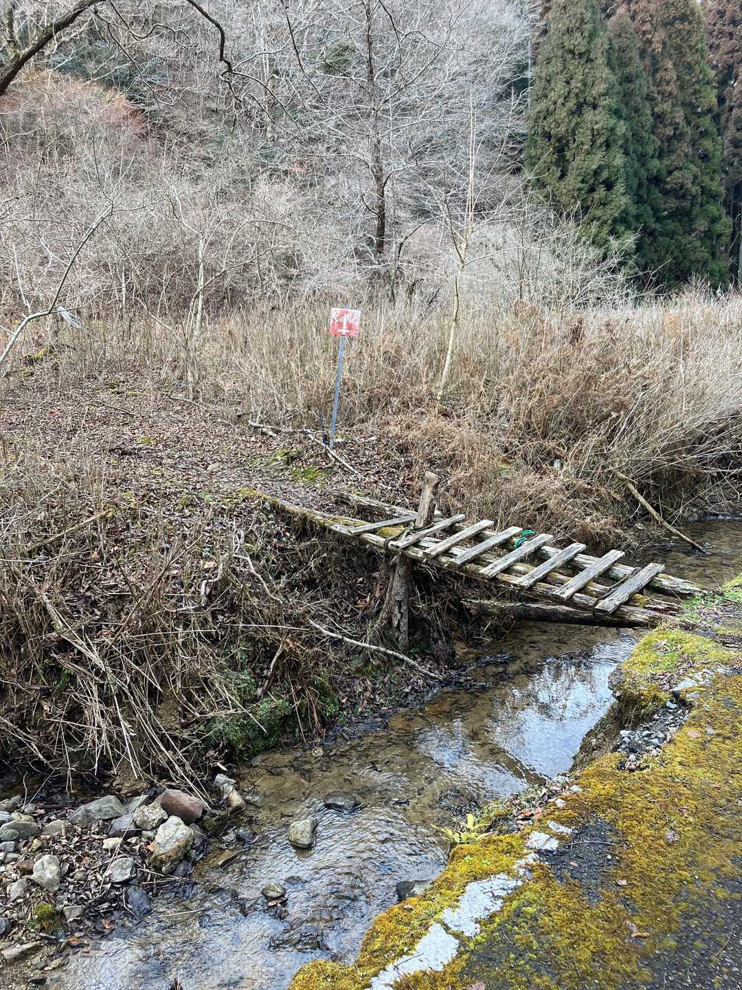 舗装路をしばらく登って、この橋から山道に入ります。
