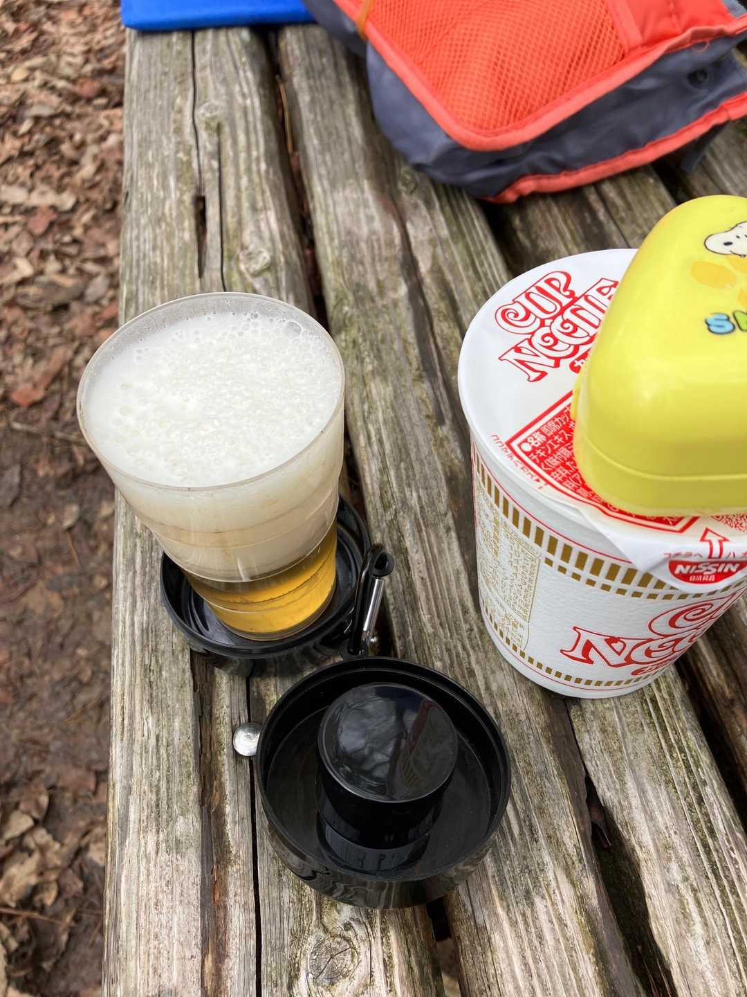 てんくら0°で風速13だったので、流石にビール🍺は要らないだろうと思ったのですが、きりんさん、キャッシーさんからお裾分け^_^ りょうびの丘にて昼食