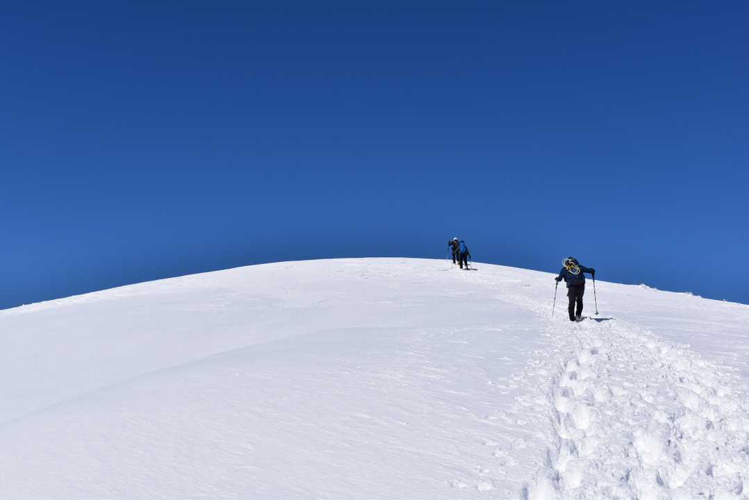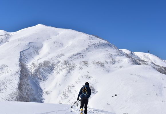 山仲間と銀杏峰・部子山冬季限定ルートを計画していた所へ、絶好の高気圧日和になった。 宝慶寺登山口には15台以上の車で県外ナンバーも多い中、次々とアイゼンを付けて登っていく。 前山の長い登りを越えて荒島岳・白山の絶景。そこから一旦下り登り返しで尾根へ出ると一直線の雪の道、左側には荒島岳・白山の絶景を眺めながら次に続く天竺坂のクラストした斜面を登り切り銀杏峰山頂に立つ。 極楽平の奥には部子山へ続く、小休止の後すぐに冬季限定の雪原ルートで部子山へ向かう。 360度どこを見ても綺麗だとしか表現出来ない。 部子山山頂への登りはクラストした急登をアイゼンの刃で登り切り山頂到着。 500mm望遠で穂高連峰、乗鞍岳、御岳山、南アルプスと3000m級が見える天気だった。 下山は尾根をたどる周回ルートで下山で素晴らしい冬山登山に満足。 おつかれ山でした。 今回のような天気はシーズン中でも希少な天気(終日雲一つ無い)と、写真を撮るのに夢中になる程の当たり日でした。