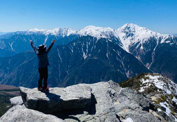 前回吹雪で撤退した薬師岳リベンジ😊 薬師岳からの素晴らしい稜線を見たら観音岳に自然と足が進んでしまった✨ 気分はサイコーだったけど疲労が半端なくヨロヨロヘロヘロでした(-。-; 朝はものすごい音と共に暴風が吹き荒れていたけれど次第に風も止み 山頂は無風状態で暖かかったので天国でした! 雲ひとつない快晴で北アルプスや富士山もクッキリ。近くにいたおじさまとすごいすごい!と感動を分かち合うひと時がたまらなく幸せでした。 最高のリベンジができて嬉しいです🥹