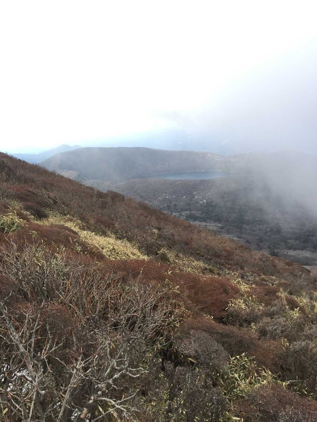 韓国岳、一週間で全く様相が変わっていました。 樹氷もなくなり、あれだけあった雪もほとんどなくなり道路脇に少し残っているだけになりました。 アイゼンも用意していたんですが必要なく、普通に登れました。