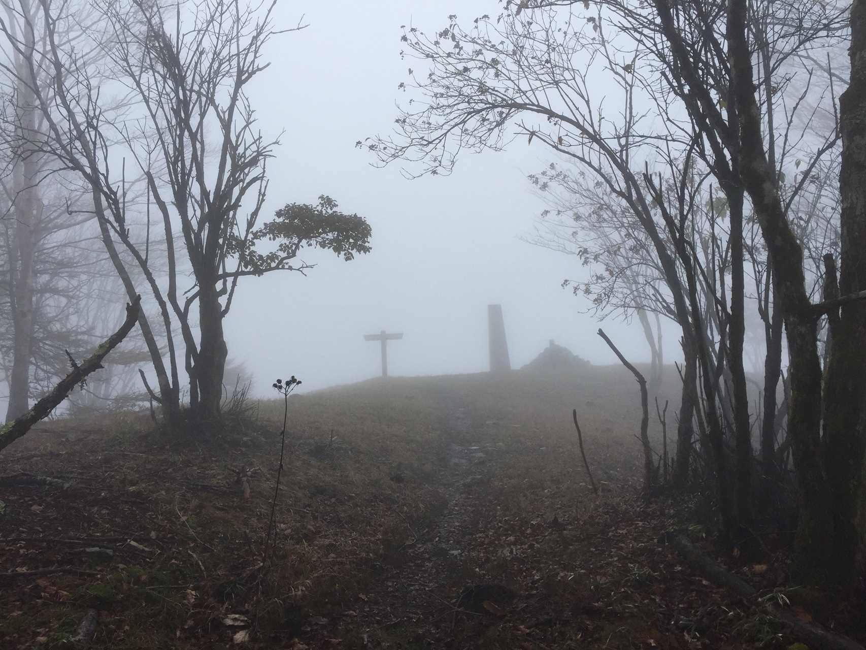 もっと見る土・日と久しぶりにお天気に恵まれ、青空のレポが続々とあがるころ・・かと思いますが、悲しいかな、、コレは、まさかの雨?!真っ白?!な山歩きレポです。 実は2018奥多摩10座コンプリートを目指しているワタシ。まだいくつか残っているのですが、その中に行ったことがない山で、噂によると骨のある、なんでも奥多摩三大急登の一つだという山があります。一人ではクリアする自信がなくて、フクちゃん登山部隊長にお願いしてご案内頂くことにしました。 目指したのは「鷹ノ巣山」。 YAMAPで検索するも、レポの数はそう多くはありません。でも、そのレポを拝見すると、急登とは言え、静かな山行きを楽しめるとってもいい感じ~♪の奥多摩らしい山です。 好きかも?わーい!楽しみ!!でしたが、まさかの、、ちょっと寒い? もしかして降ってきた? ありゃりゃりゃ、かなり降ってきた?・・・で、視界不良、というか、ほぼ視界ゼロ。 どんな山だったのかしら?? 山頂の眺望は??な山行きとなりました。 でもね、楽しくなくない😄 嫌いでもない・・😄 コレはコレで好きな路線。楽しかったよ~♪ 奥多摩三大急登に名前を連ねる「稲村岩尾根」そこを登ったわけですが、やわらかな視界のせい? 三大というほどの急登を歩いたような気はしませんでした。 (・・といっても、急登ではないわけではないですよ。それなりにはぁはぁしながら登りましたから。) 予定では、鷹ノ巣山から石尾根を下って六ツ石山経由で下山するつもりでしたが、 雨のときは避難小屋でお昼、そして、峰谷へ下山というエスケープルートの用意があり、結局はそちらのルートへの下山となりました。 エスケープルートでお邪魔した鷹ノ巣避難小屋、とっても立派でした♪ これなら泊まれそう~!! 今度みんなで女子会~☆泊まっちゃう?!なんて思いました。 8:03 奥多摩駅 8:10 バス 8:45 スタート 8:50 登山口 9:55 稲村岩 12:50 鷹ノ巣山 13:20 鷹ノ巣避難小屋 15:20 浅間神社 16:20 峰谷バス停 17:00 峰谷橋バス停 17:42 奥多摩駅