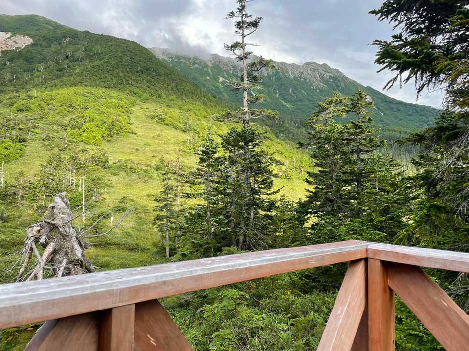 2階のテラスからの水晶岳