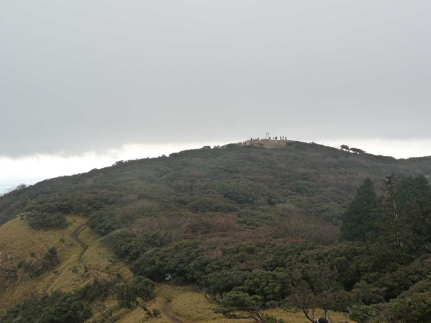 すべて見る今日は雨乞山登山の予定で鈴鹿方面に向かっていました。途中では天気は良く、今日は気持ちよく登れると思っていたのですが、登山口の竹平峠に着いたら雨!しかも分厚い雲で晴れそうも無く頂上付近は雪っぽいというわけで、急遽予定を変え鈴鹿7マウンテンで行っておらず、比較的近くで晴れていそうな入道ヶ岳に登ってきました。こちらでは天気は何とか持ち、雨には降られなかったものの、頂上は気温1℃で雪もちらつく中、寒くてお昼をどこで食べようか迷うような状況でした。頂上付近は開けて展望も大変よく、もう少し暖かい季節ならばゆっくりと頂上にいたいと思ういい山でした。今日は寒かった!
