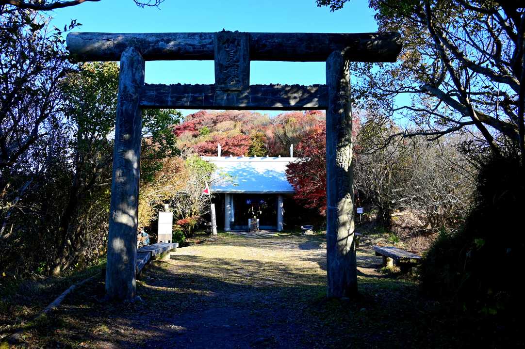 妙見神社にお詣りします。 お詣りがすんだら、左側に降りて国見岳に向かいます。