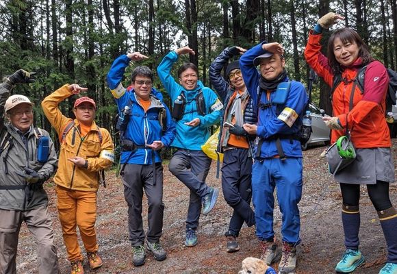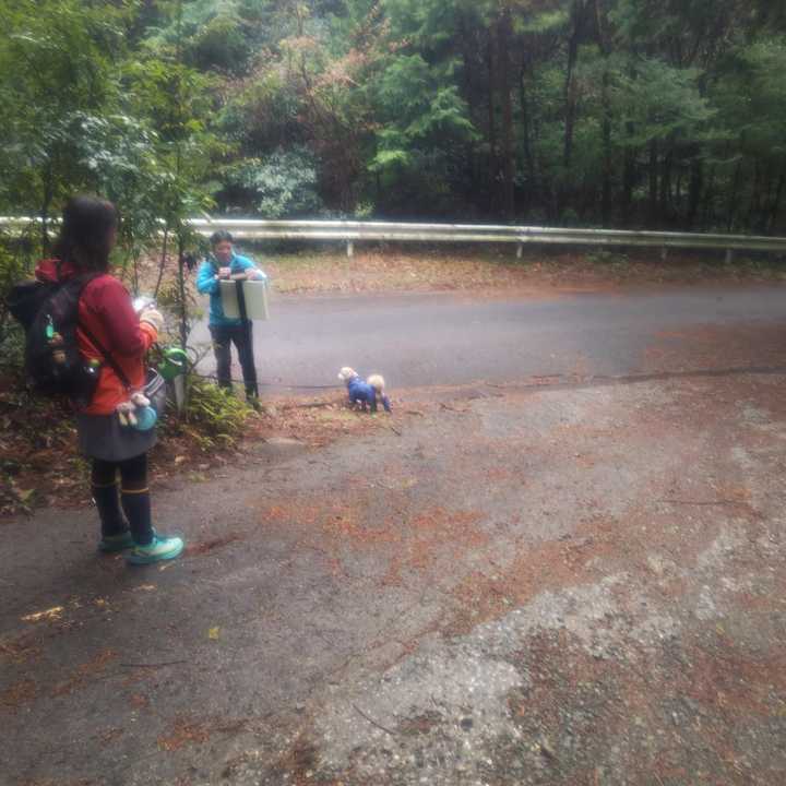 中山登山道入口まで移動しました。やまちゃんさんが撮影の準備。