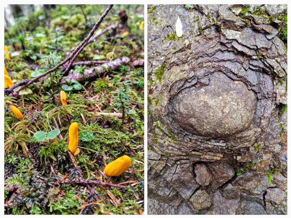 🍄多い登山道 黄色のニョロニョロはカベンタケ 丹沢⛰️大山でも見掛けたボタン岩? ここでも見掛けました