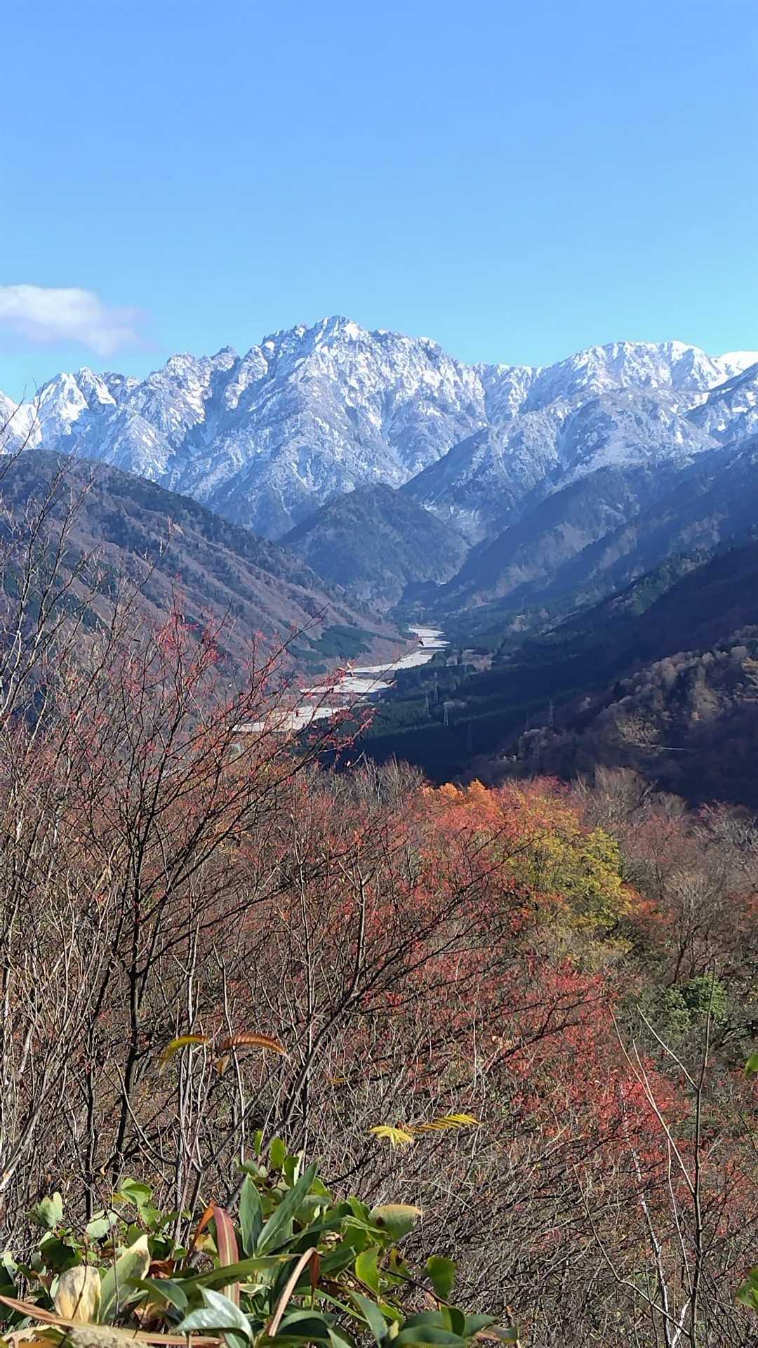 途中木の間から見えてくる剱岳の姿✨ 葉が落ちているから見えやすい👀