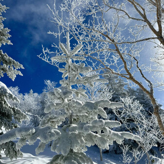 すべて見る百名山の雪山に行きたいと思い 四阿山へ(あずまやさん) ↑これ読める人そんないないと思う 終始スノーシューを履いて快適なスノーハイク⛄️ 頂上はガスガスだったけど下の方は天気も良く 霧氷も綺麗でした。 だだっ広い雪原はほんと壮大でテンションあがります! 登山口まで車でいけるのもポイント高いです! でもトイレはありません。