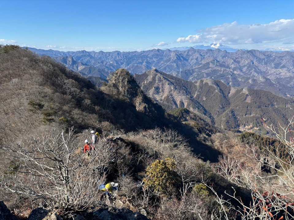 ガイドさんとショートロープでつながって歩く練習山行 思っていたよりもかなり険しく正直怖い思いもしましたがつながっているという安心感は前に進む力になることを体験しました。 蟻の塔渡りみたいな痩せ尾根の通過、落ち葉の上に雪が積もって凍っているトラバース、緊張の連続で短い距離でしたが何時間も歩いたような疲労感でした。でもとても楽しかったです。 少しずつ小さなピークを上がっていくと素晴らしい景色、ガトーショコラの浅間山もはじめて見れて思わず声が出ました。 必要な用具の使い方もまだまだですが少しずつ練習重ねて安全に楽しくあの頂の上に立ちたいですね。 自分で撮るは無理だったのでガイドさん達が撮ってくださいました。 YAMAPにあげることは了承済みです。