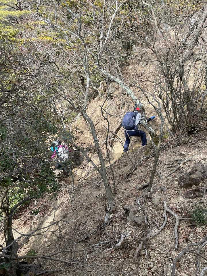 冬山トレーニング登山 難所の通過(中級編) 〜鎖場・ハシゴ・岩場を越える〜 に参加。 ガイド 1班 ハネ◯さん 2班 イケ◯さん 3班 サト◯さん 添乗員 ハヤ◯さん 参加者 26名 本厚木8:00発のバス🚌に乗り、広沢寺温泉♨️バス停へ。 班ごとにストレッチとトイレを順番に済ませスタートします。 1時間ほど舗装路歩きをして登山口に到着。 3月初めとは思えない暖かさ💦 長袖Tシャツ1枚で歩きます。 ミツマタはこれからが見ごろですね😅 山神トンネルでは、同じ班の方がスマホのランプを使用してくださり、足元を確認しながら歩きました。 七沢山へ到着する前の稜線でお昼休憩。 歩くと暑いですが🥵やっぱり休憩すると冷えますね💦 20分ほど休んでから再び歩き始めます。 ここからはアップ⤴️ダウン⤵️を繰り返し、階段あり、鎖場あり、岩場ありでアスレチック感満載です。 痩せ尾根のザレ場で神経を使いながら歩くので、緊張感半端ない😅 でも、とーっても楽しい🎵 15:15のバス🚌には間に合わず、道の駅に寄り、トイレを済ませ16:15のバス🚌で帰ります。 神奈中バスさんが、私たち団体用に臨時バス🚌を出してくださったので、座って帰ることができました! ありがとうございます🙇♂️ 今日もお天気に感謝🙏 人との出会いに🙏 怪我することなく下山できたごとに感謝🙏 これからも楽しく歩けますように💕