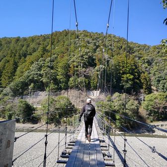 すべて見るテレビなどよく流れる果無集落へ😊 五条や十津川へお花を観るというミッションを兼ねて、道の駅十津川からもう少し行くと、昴の郷から小辺路を歩いて果無集落に辿り着けるとわかり、車で走りました。 昴の郷は、源泉掛け流しの宿泊施設や温水プールの施設にステージのある広場があり、無料駐車場180台です😊 駐車場入口横にトイレがあります。 もちろん宿泊施設内のトイレも借りる事が出来ますよ。宿泊施設にはお食事が出来るレストランもあります。11:30からのオープンなので行動時間に余裕がある方は入ってみても良いかもしれません😉 施設の方に小辺路への取付きを教えて頂きスタートしました😊 トンネルを抜けて右に行くと橋があるので渡って行くと…やられました😅 私もmochipも、しっかりとした鉄骨の橋を想像していましたが、そこには定数5名の吊り橋が〰️😅風もあったので、揺れる揺れる😨 家に着いてから気付いたのですが、果無マップにはしっかりと吊り橋と書かれておりました(笑) わーきゃー言いながら渡りって小辺路の入口へ😊歩いていたのが私達だけで良かったです😅 少し急なつづら折りの石畳の道を上がります上がります。 風があって寒かったのですが、直ぐに2人ともアウターを脱ぎました(笑) 途中景色が開けた所にベンチがあり、集落はそこから直ぐです😊 世界遺産果無集落が視界に入ると、晴れてて良かったと感じながら、スマホでパシャリパシャリと撮影😊貸し切り状態でした😆 施設の方がお天気も良いので、周回で戻られては。と言われたので戻りは林道で。 少し下った所に、めん滝があり水量もありマイナスイオンがタップリでした😆 林道歩きも天気の良さで色んな山々がはっきりくっきりと見えて、感動しました😊 ぐんぐん林道を下って吊り橋を渡り返すか、遠回りしてのんびり歩くかで結局吊り橋を選択😅 行きよりも風が強くて揺れ揺れのわーきゃー😆で昴の郷へ戻りました😊 宿泊施設で十津川サイダーを購入して、ロビーで休憩させて頂き、そこからお花巡りに向かいました。今日も楽しいハイキングとなりました😊