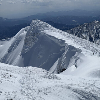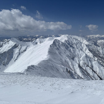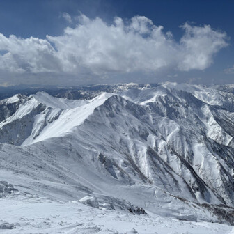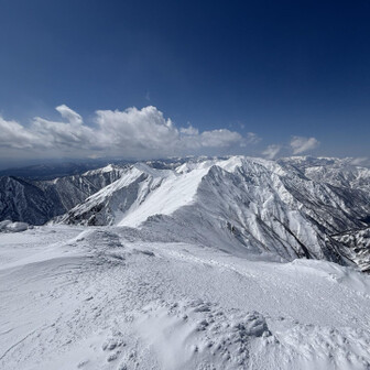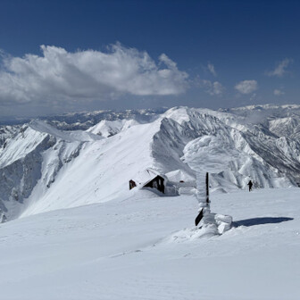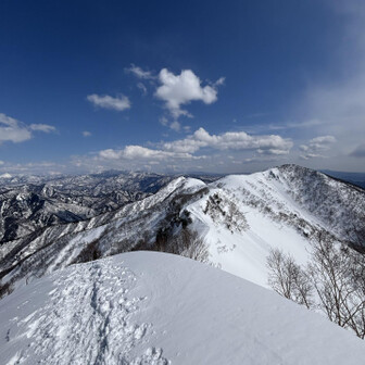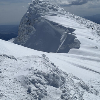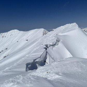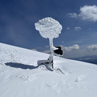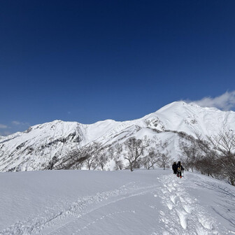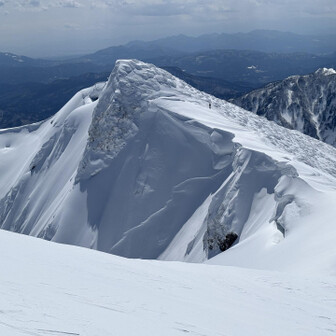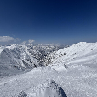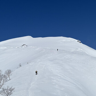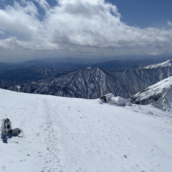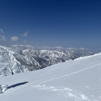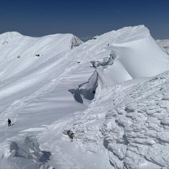 すべて見る初谷川岳は残雪期でした。 2週連続で天気に恵まれて、谷川岳ブルーの青と、雪山の雪原の白のコントラスト、控えめに言って最高でした。 ロープウェイ🚡で天神平へ、朝方まで降雪の為トレース無し。 準備して写真撮ってる間に、出遅れスタート▶️ 先陣の勇者の方々の付けて下さったトレースを辿り、なんとかトマの耳・オキノ耳の山頂へ初登頂出来ました。 山頂からは素晴らしい大パノラマと稜線から張り出した雪庇やシュカブラの自然の造形美を堪能しました⛰️