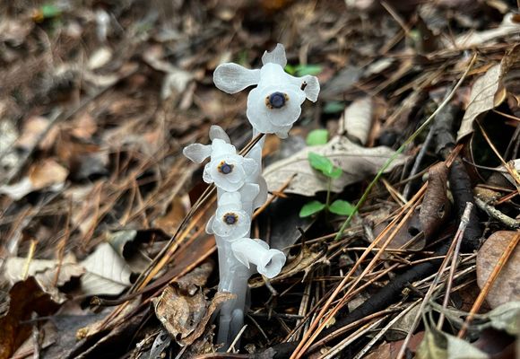 もらった絵文字65写真43枚03:437.2 km575 m牛松山と銀竜草愛宕山・三頭山・朝日峯(京都)2025.06.16 (月)日帰りめぐギンリョウソウの情報をたどって半国山へむかったのですが…登山口付近に着いたけど、私の技術では駐車場に入る道が無理で(泣)行き先を変更。牛松山へ。迷ったりしてスタートが遅れて暑くなってしまって、最初のロード歩きでバテぎみに…ギンリョウソウに出会えてから体調が回復w