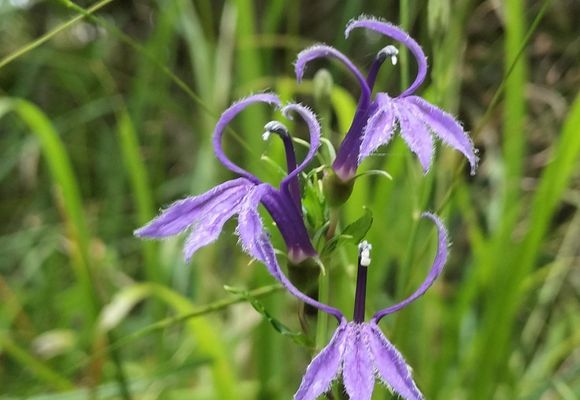 今日は、花好き3人で散策です。✨去年お邪魔して、綺麗だった、キイジョウロホトトギスと、シラヒゲソウを見に、鶴岡山と、明智の森に、お邪魔しました。 去年は、ソライロタケが、2カ所で見つかりましたが、今年は、どうかな~? 今日は、天気が、わからない?こちらを出発して、ほとんど☔️は降らずに、ミスト状態で歩けました。 登り始めは、少しヒンヤリ で、途中からは、暑くて汗もかきましたが、山頂テラスで、椅子を並べて、涼しくまったり過ごしました。 その後、明智の森に移動して、花を探しました。 キイジョウロホトトギスは、少なかったけど、まだ綺麗に咲いてました。 シラヒゲソウは、あちこち点在して、群植してましたが、可愛い花が沢山見れました。他にも色々の花🌺 花友さん、ご一緒ありがとう御座いました。 運転も、ありがとう。 お疲れ様でした。🙂↕️ 皆さんのレポの写真は、とても綺麗で、1枚1枚に、絵文字を押したいのですが、 指が最近、痛くなってきて、トップ画だけ、押させてもらってます。m(_ _)m いつも、ありがとうございます。🙂↕️