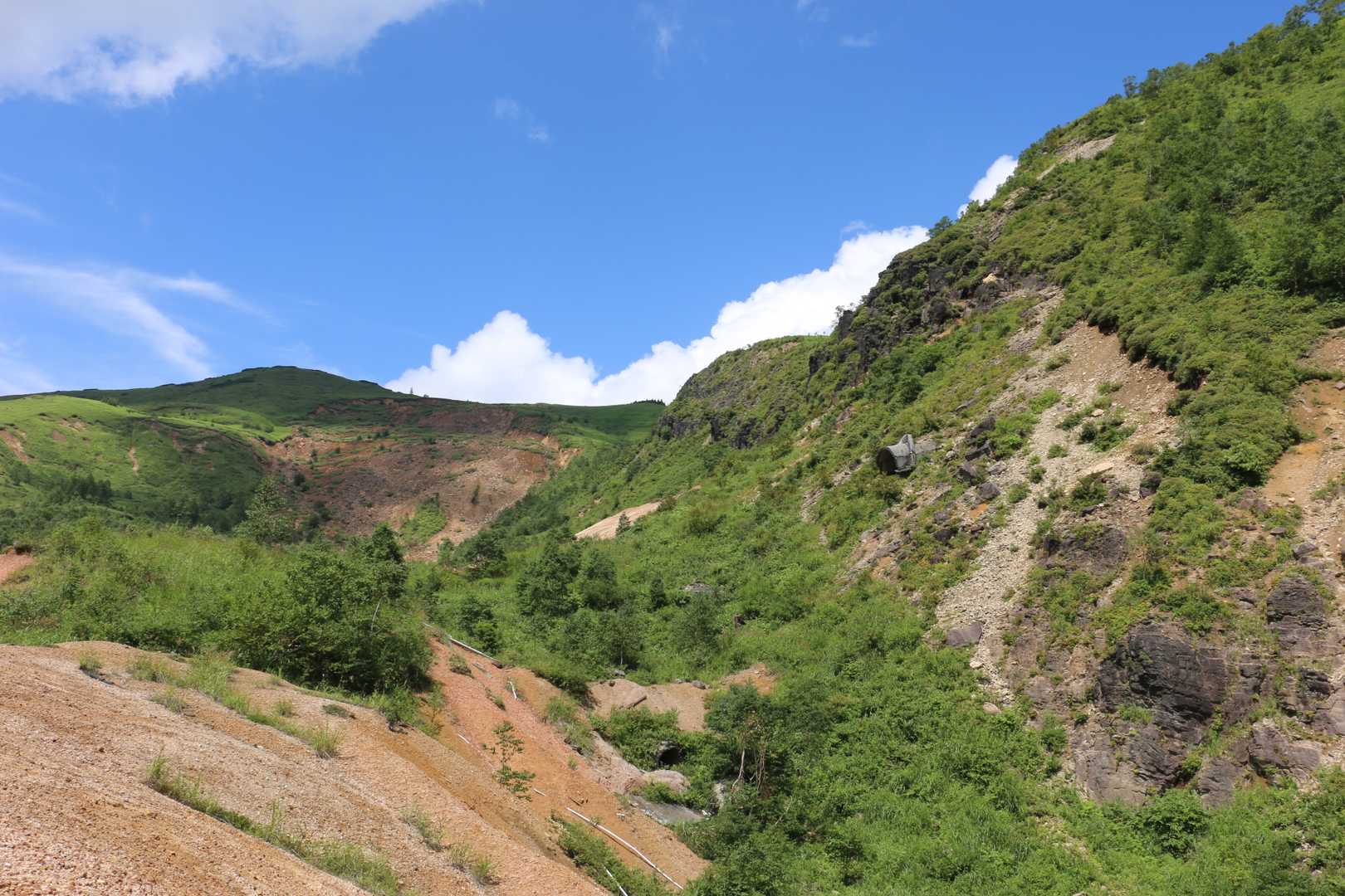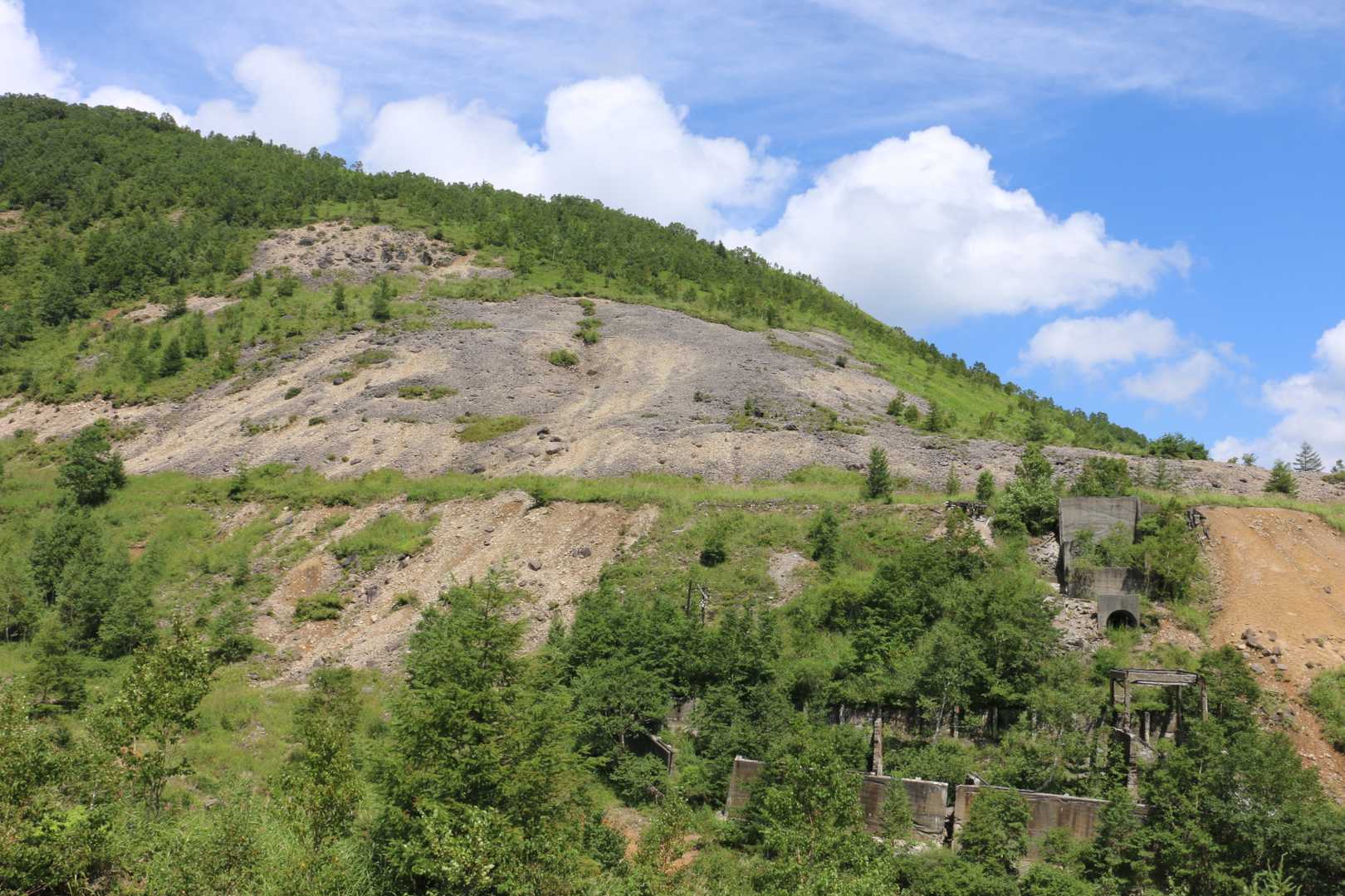 そろそろ秋風吹く頃・・・ 志賀の山も、少し静寂が戻ったかな? 久し振りに群馬の秘境、知る人ぞ知る毛無峠へ行ってみました。 長野百名山、御飯岳や毛無山、破風岳に土鍋山と一日で四座歩けちゃう 贅沢なポジションに有ります。 今回は、時間の関係で展望を楽しめる二座を登りました。 また、破風岳では地元の方に色々とお話を聞かせていただき、さらには 眼下に見える鉱山跡「小串鉱山」を案内していただくという 何とも、盛りだくさんの一日でした。 初めての小串鉱山。 かなり風化が進んでいましたが、マニアの間ではいまなお聖地の一つとして 静かな人気とのこと、 朽ち果てる前に、もう一度足を運んでみたい・・・そんな遺構です。