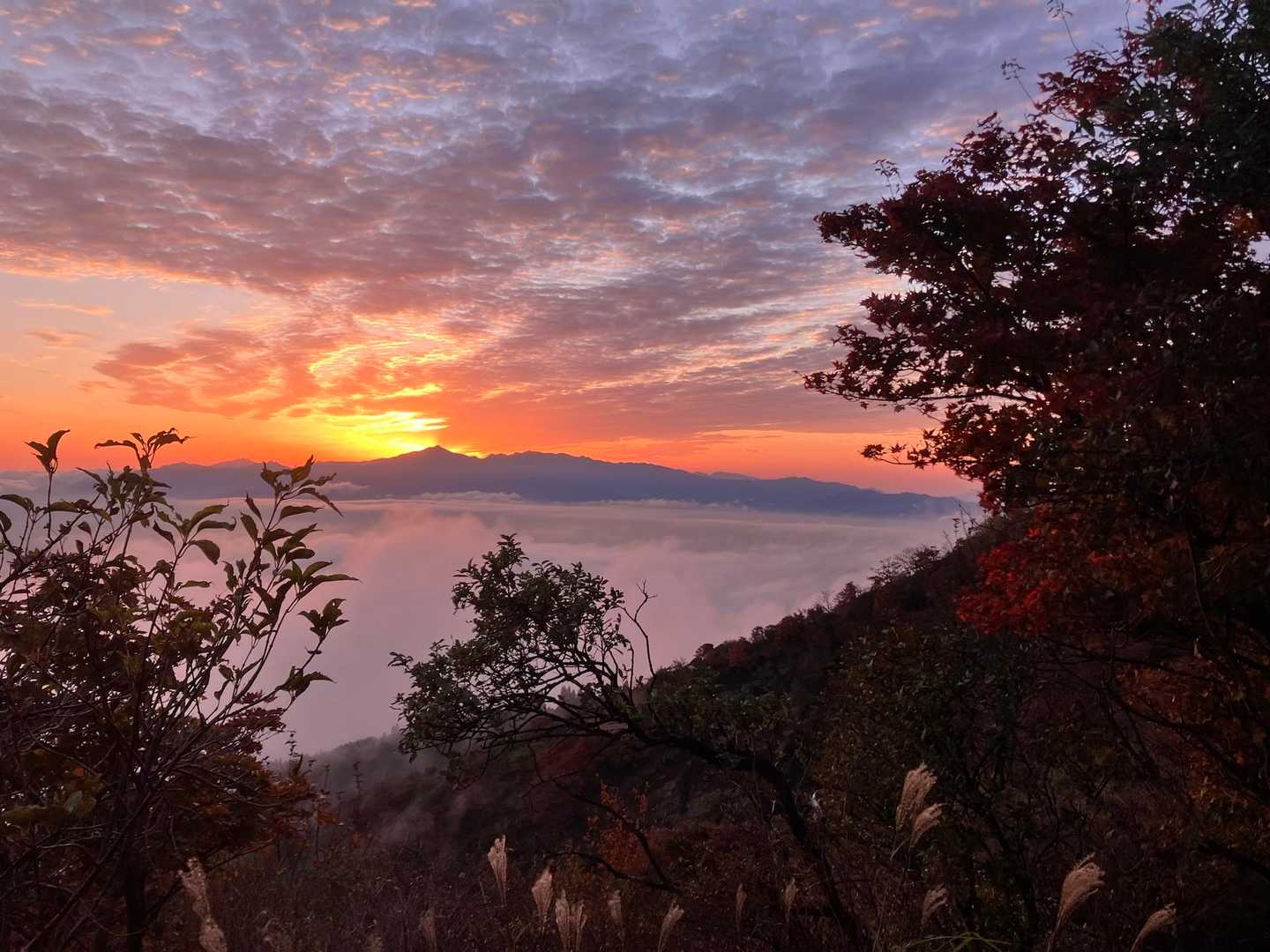 すべて見る根子岳 東峰⛰️へ朝駆け🏃💨 箱石登山口🥾着🚙が 5:50⌚️… 日の出🌄時間は 6:39⌚️… 山頂⛰️で拝む🙏ことはできないなぁ…😅 頑張って 眺望の良いところまで…🏃 箱石峠登山口🥾(通行止め?)の分岐まで行けた😅… ちょうど 祖母山⛰️辺りから 太陽🌞が…出始めたが…雲☁️が…😫 残念😢 ただ 雲海🌊☁️が凄い😃 波打つ様に畝ってる😁 山頂辺りになると 風🌬️が強い… 寒い😨 でも 晴天☀️… 遠くまで よく見える…😄 根子岳 南峰⛰️…天狗峰👺の地獄谷… 斜面のパッチワークの様な紅葉🍁… 可愛い😍💕 色々な景色が楽しめた…登ってみないとわからない…😅