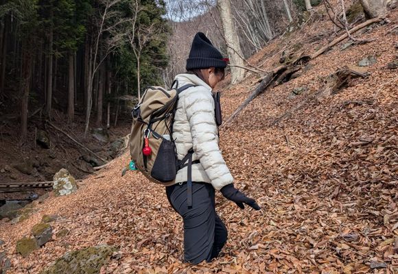 山梨百名山、滝子山へ行ってきました! お天気良くて今日も富士山キレイに見えるかなぁってワクワクしながら出発🚗 歩き始めはそうでもなかったけど、風強めのお山歩となりました。 前から登って見たかった寂しょう尾根!なかなかの登り応え、途中から岩登り〜😃 たまーに、怖い〜助けて〜😫なんてところもあったけど、楽しく登ることができました! 山頂では、楽しみにしていた富士山は見えず😞風強くて、雪もチラチラしてきたので、お昼も食べず写真撮ってすぐ下ることに。 下っていくと、雪多めになってきたので、念の為チェンスパ装着! でも、歩いて行くとそこまで雪積もってなかったので途中はずしました! 沢を横目に、雪景色と水の流れる音にすっごく癒されました😊 そして、落ち葉🍂 皆さんの活動日記で、落ち葉すごいのはわかっていたけど、ほんとにすごくてほんとに膝下くらいまであってビックリ😆 何回も滑って尻もちついたけど、サクサクの中に埋もれておもしろかった〜🎵 富士山は見ることできなかったけど、岩登りや、沢沿い歩きに雪景色、たっぷりの落ち葉、 ほんとに楽しいお山歩でした😄