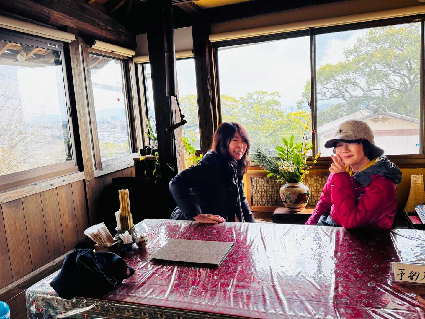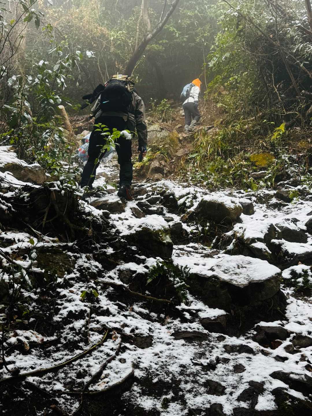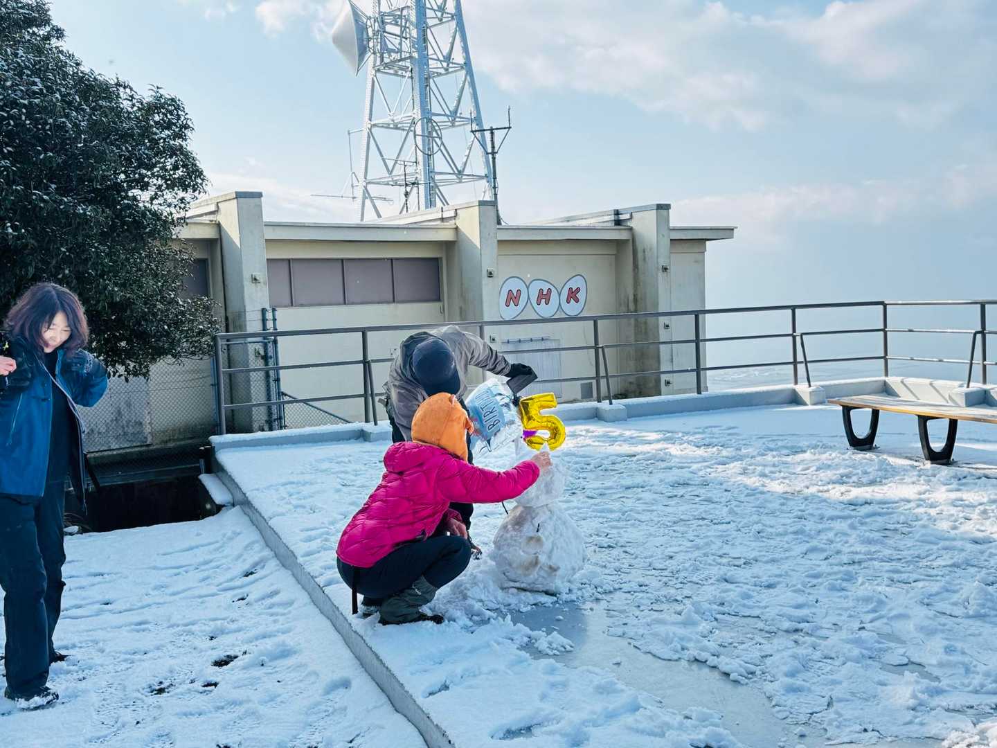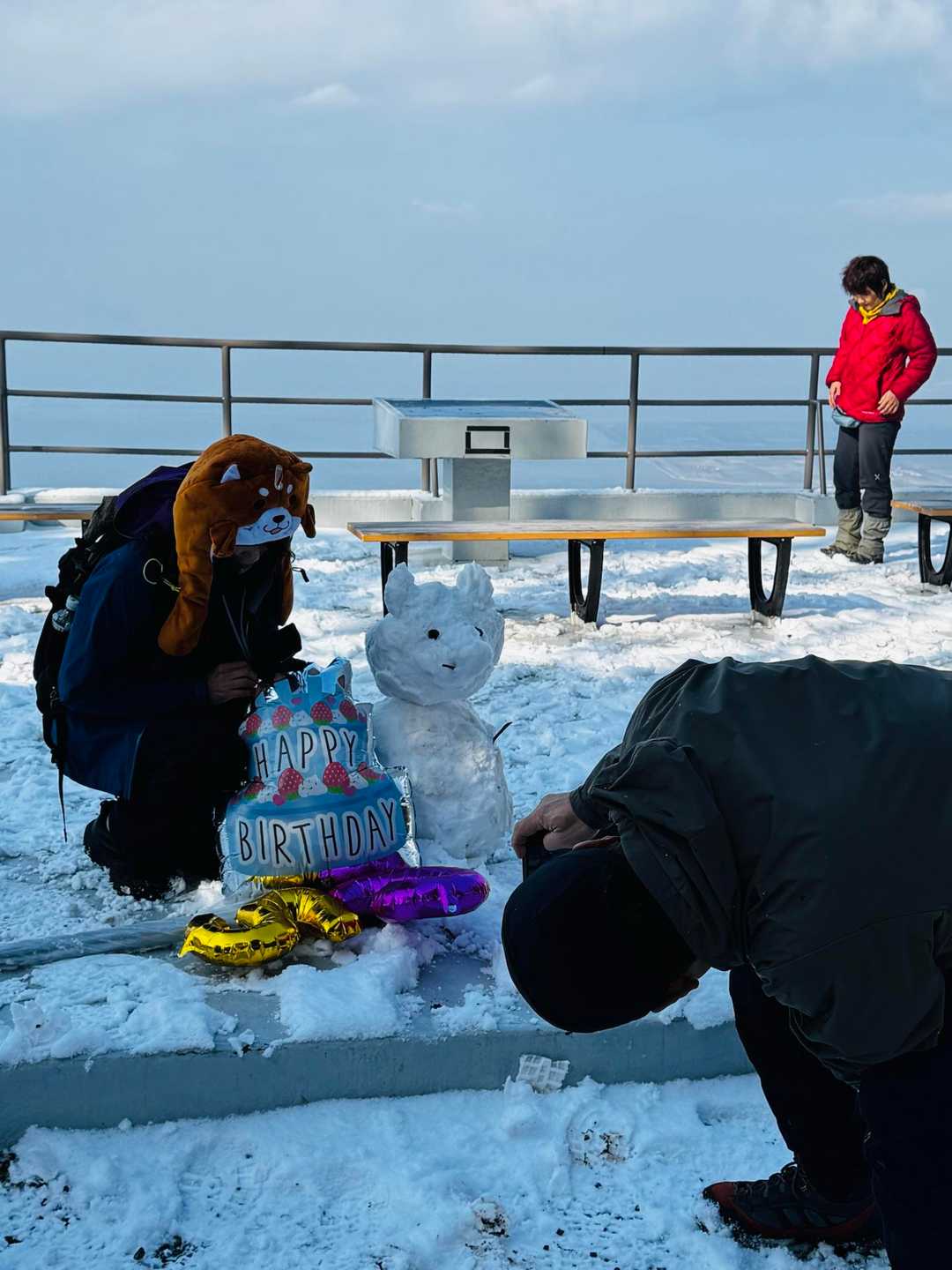 天気予報では、未明から雪❄️ 登山スタート時には曇り、そして徐々に回復予定。 しか〜し💦 実際には気温が下がらず雨☔💦 あぁ〜っつ! 雨かよぉ〜😭 でも、小雨降る中、取り敢えず登山口へ向かう。 ・・・と! 登山口近くまで来て、金峰山が見えると、 何と!白いっっつ! 樹氷っつ⁉️ 雪っつ⁉️ テンション爆上がり! 小雨もパラついてるし、早く登らないと溶ける! ・・と、急いでスタートしなきゃ! でもね。今日はね。 いけちゃんさんのバースデイ登山🎉 バースデイバルーンを膨らませ、ザックに取り付け、準備OKからのスタートです。 その内に小雨は止んだけど、 登りで使う急登の「さるすべりコース」は 木々の葉の下をくぐったりするので、 葉に積もった雪❄️が落ちて、服やザックを濡らす。 防水のハードシェルを着ると暑く汗をかくので 服が濡れるのは諦める。 (距離は短いので濡れても致命的にはなり得ないと判断) 山頂に着く頃には、青空が見え始める。 やった! お参りを済ませ、早速、ヤマガラちゃんのエサやりに挑戦。前回は失敗だったのでリベンジだっ😤 ヤマガラちゃん いる!いる!いる! 可愛い😍 木の枝から枝へ降りて来てくる。 だんだんと近づいて来る。 ピーナッツを乗せた手のひらを差し出して、じっと待つ。 来たっっつ! 指に鳥の足の爪の感覚がすると同時にカメラのシャッターを押す。 「指に止まってピーナッツを啄み飛び去る」 まさに一瞬の出来事✨ だけど、指にはしっかりとヤマガラちゃんの足の感覚が残ってる✨ 歓喜! しばらくの間に、何羽も来てくれた。 だんだんと近づいて来て、、 来たっつ❣️の一瞬がたまらない♡ しばらく楽しんだ後、雪が結構残った展望所で雪遊び。 先に居た親子さんが作った「顔なしの雪だるま」に.ミードさんが目や鼻を付けて再創作。 可愛いのができました。 ガスも晴れてきて、日差しも入るようになり最高♡ 今日のランチは 本妙寺横の「廣嶋屋」さんを予約してます。 加藤清正公、菩提寺の門前宿で、明治時代から続く参道沿いにある築130年の民宿旅館です。 お席は窓際の1番良い席を取っていただいてました。 調度品や店内は時代を感じさせる佇まいで素晴らしい。 十割の手打ち蕎麦の「蕎麦御膳」をいただく。 小鉢に天ぷら、最後に甘味としてプリン🍮 (詳細はキャプションにて) とても美味しく大満足♡ そして食後には準備したバースデイケーキ🎂でお祝い。(事前に持ち込み許可をいただきました) いけちゃんさんに喜んでいただけたようで大成功でした。 食事とお店の雰囲気を充分に堪能させていただいた後は、側の「本妙寺」にお参りして、 次の「おかわり登山 小萩山」へ向けて出発です。 〈メモ〉 *廣嶋屋さん 駐車場は隣りの本妙寺駐車場(無料)を利用。 ロケーションも素晴らしいです。 十割手打ち蕎麦なので予約した方が良い。 https://gh-hiroshimaya.com/%e3%81%8a%e9%a3%9f%e4%ba%8b%e5%87%a6/ *ヤマガラのエサの注意⚠️ 殻付きピーナッツ🥜の殻を剥いて準備する。 塩味のピーナッツ等は絶対にダメ🙅 *山頂標識は神社の裏手に有り。 見落とす人が多いので注意👀