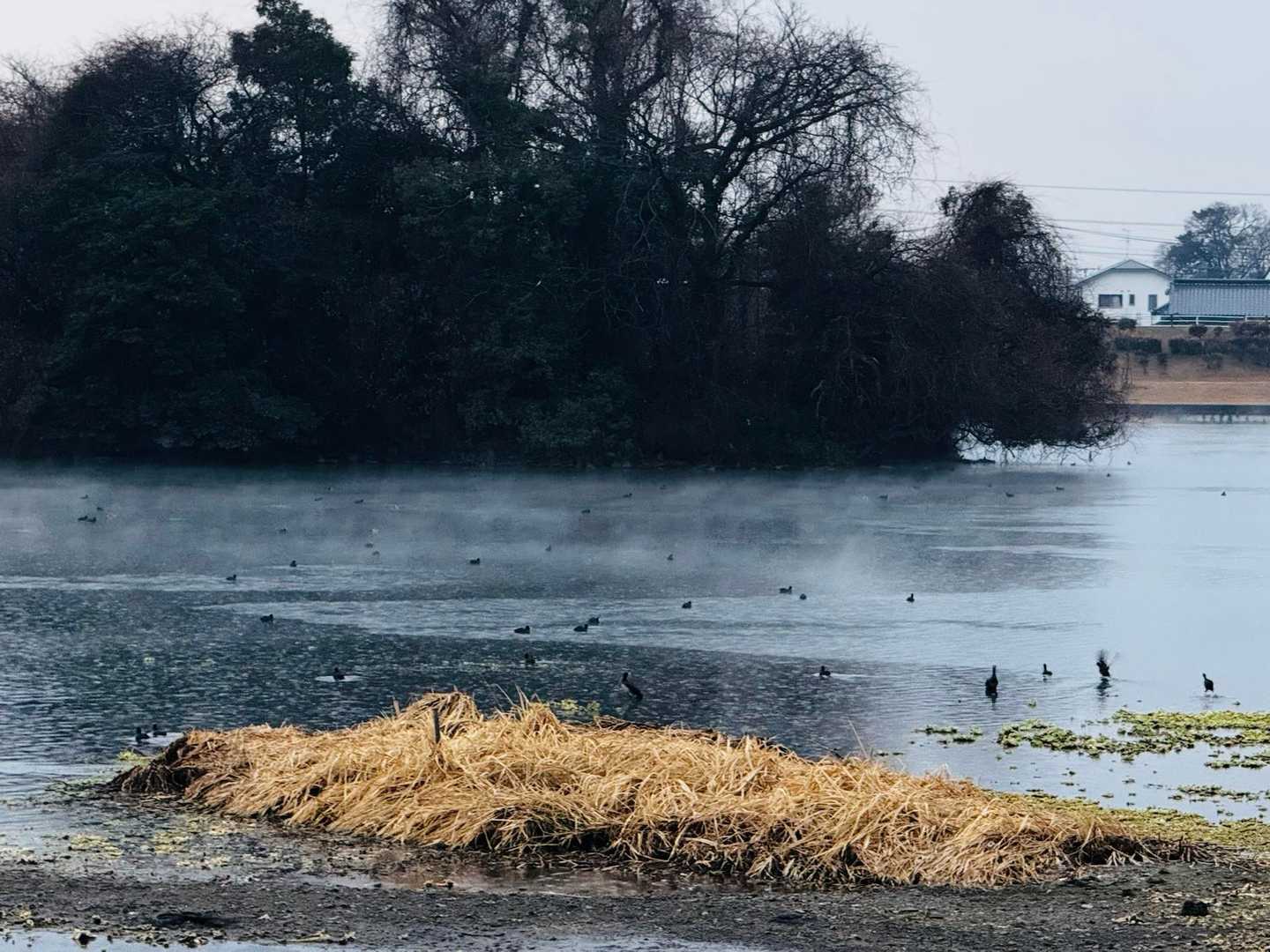 合流時間に余裕があったので、寄っていただいた下江津湖に毛嵐がたっていた。