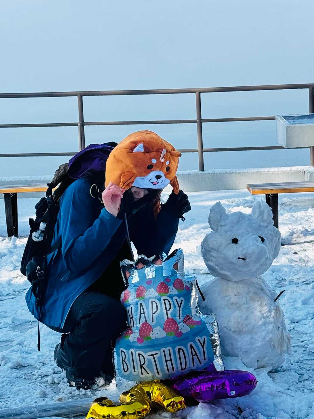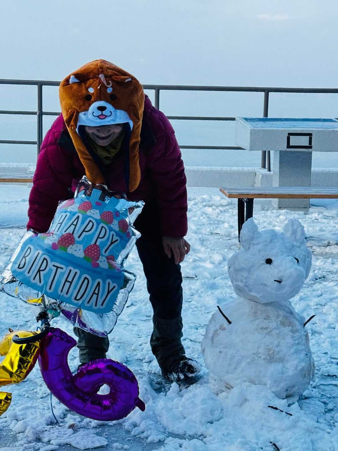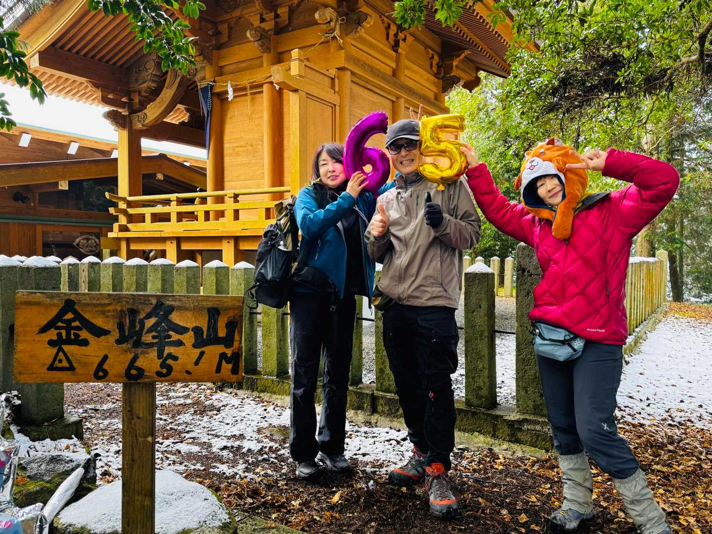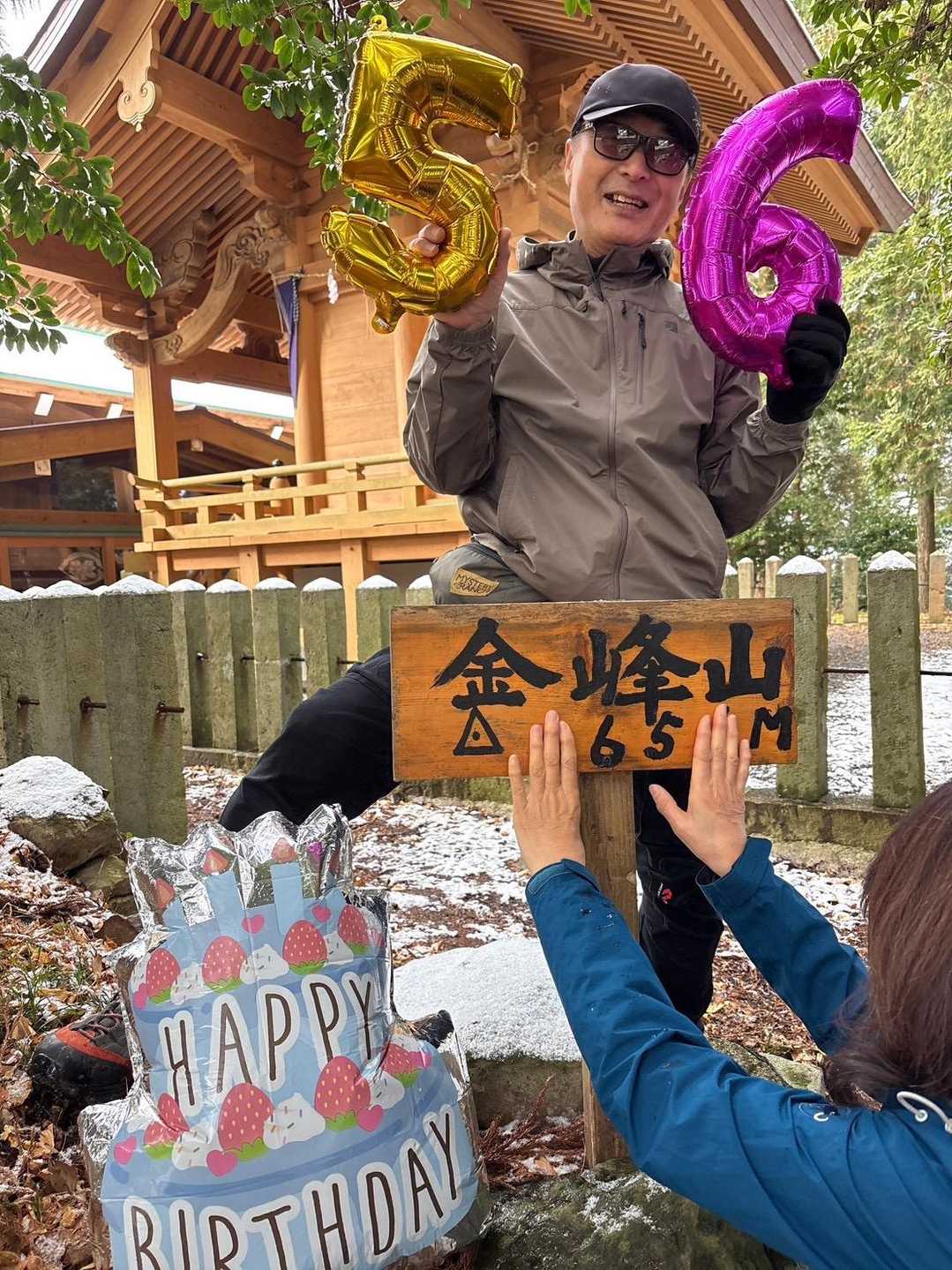 山頂標識にてバースデイ登山撮影。 バルーンの数字は???🤣 ホントは山頂標識の数字です🤣