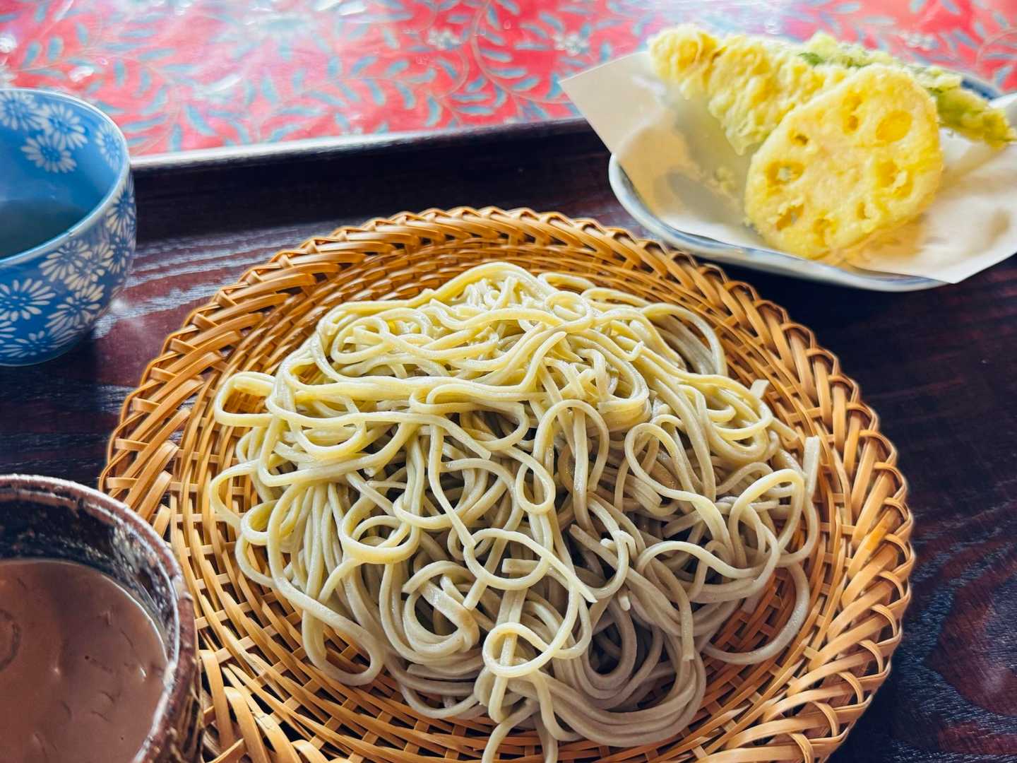十割手打ち蕎麦を「くるみと胡麻の濃厚な蕎麦つゆ」でいただく。 天ぷらも美味しい😋