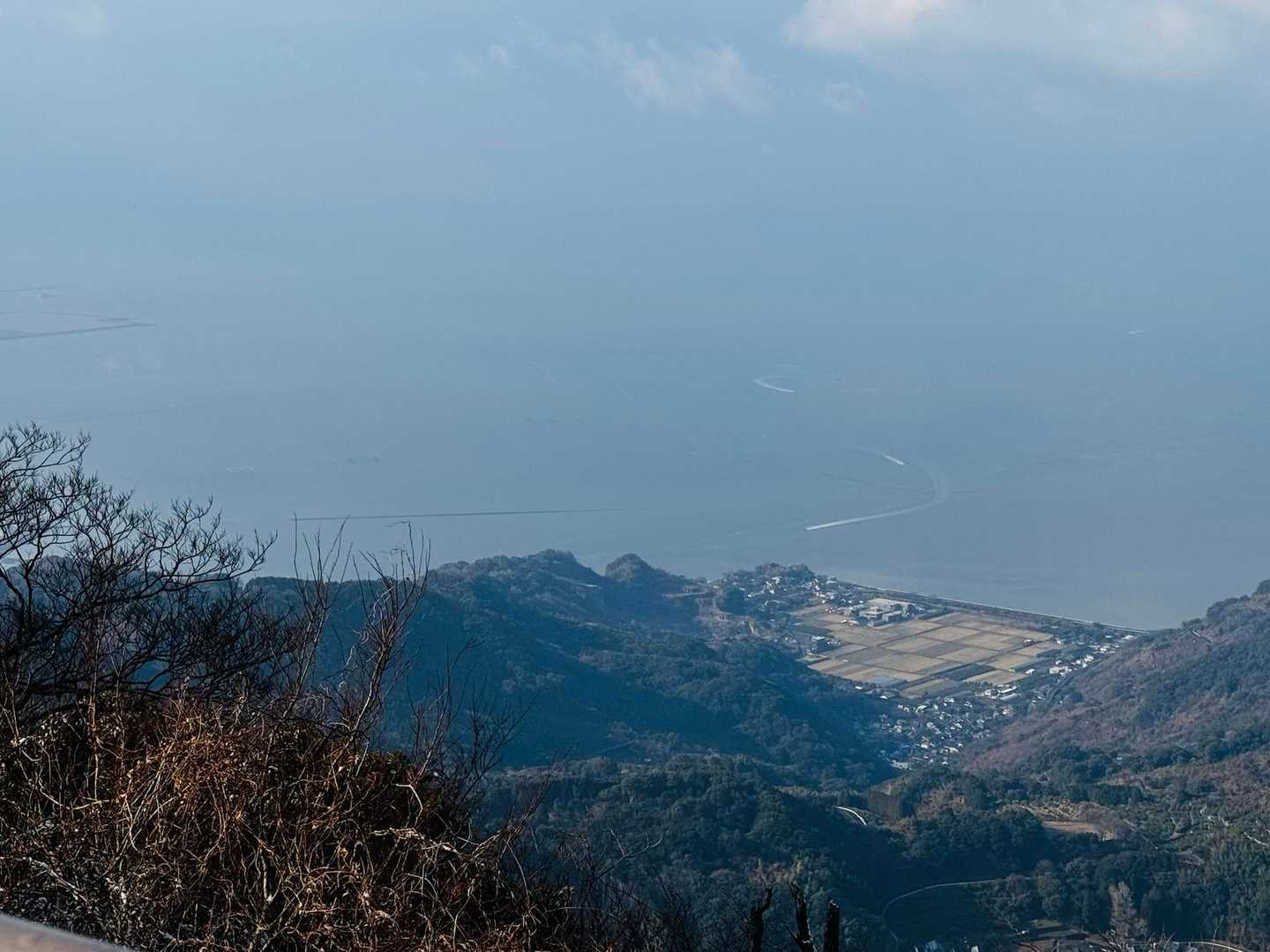 有明海。 対岸の島原と普賢岳はガスの中
