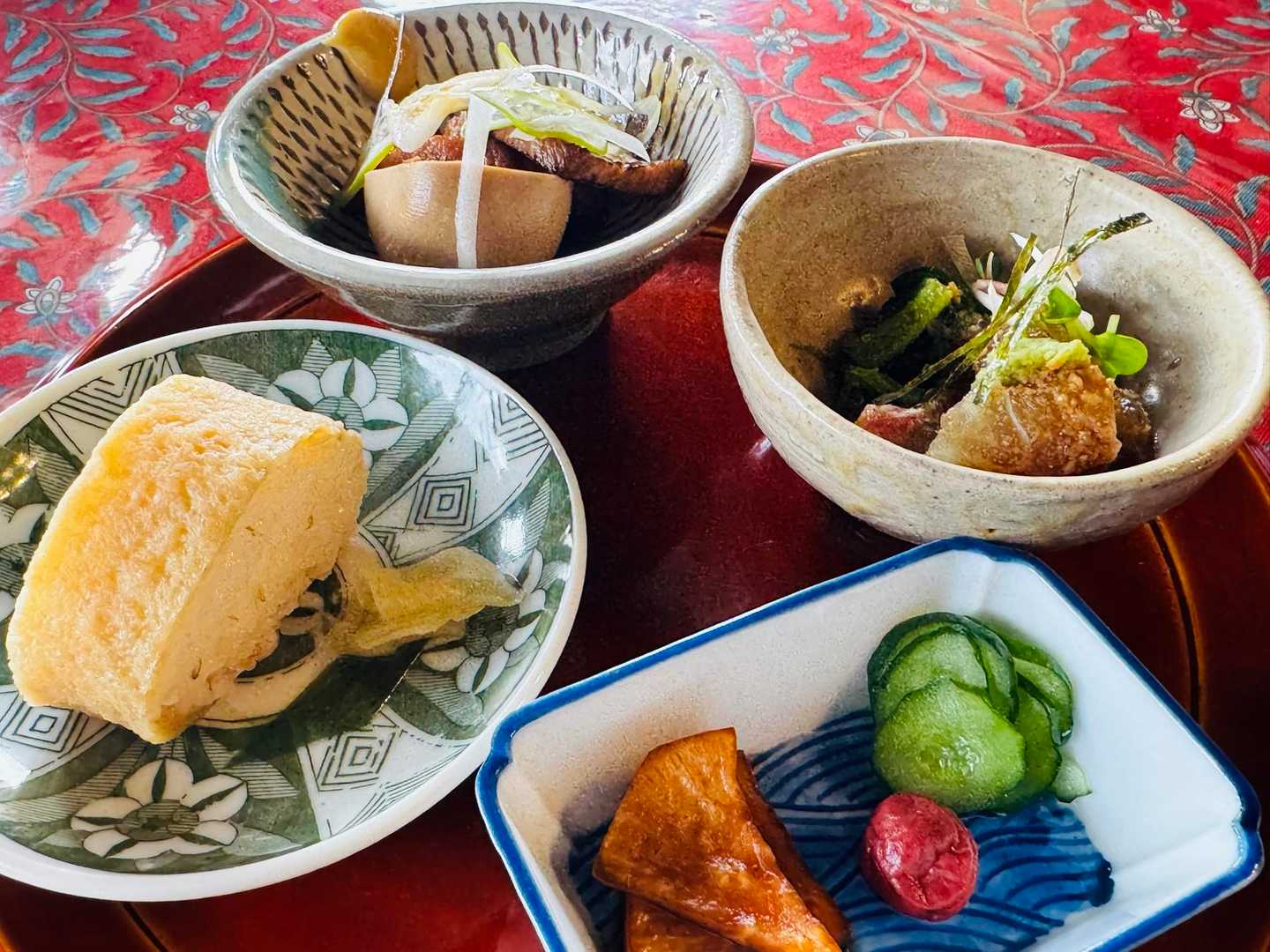 蕎麦御膳の小鉢。南関あげのいなり他4品