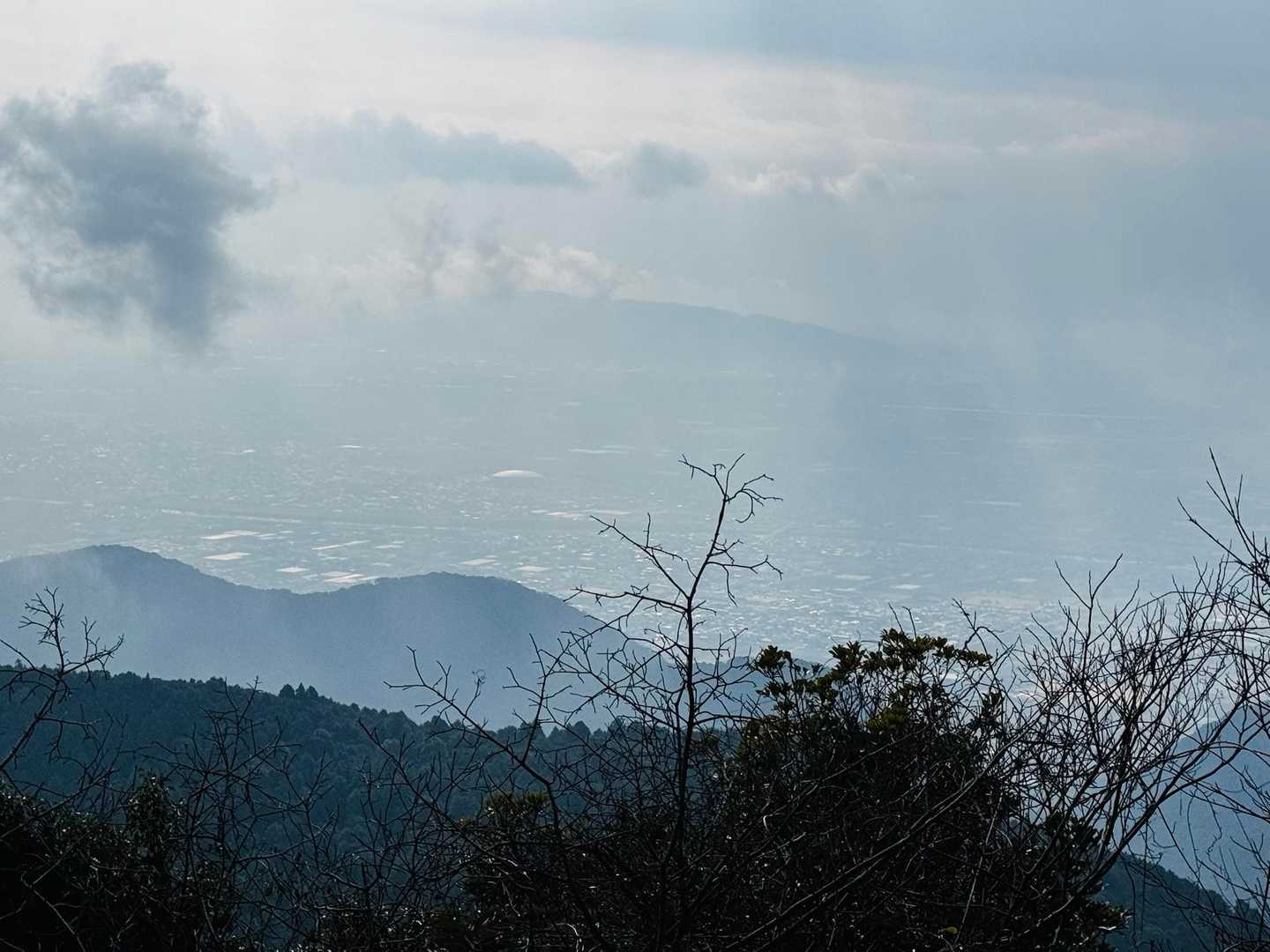 ガスが晴れて熊本市内がうっすら見えてきた。