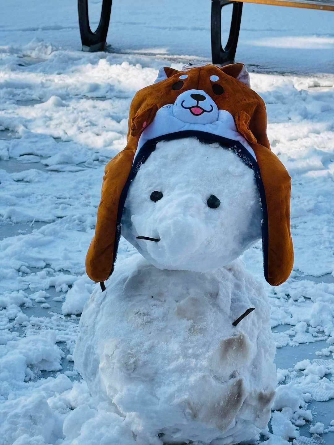 狛犬さんの鼻と頭に雪♡