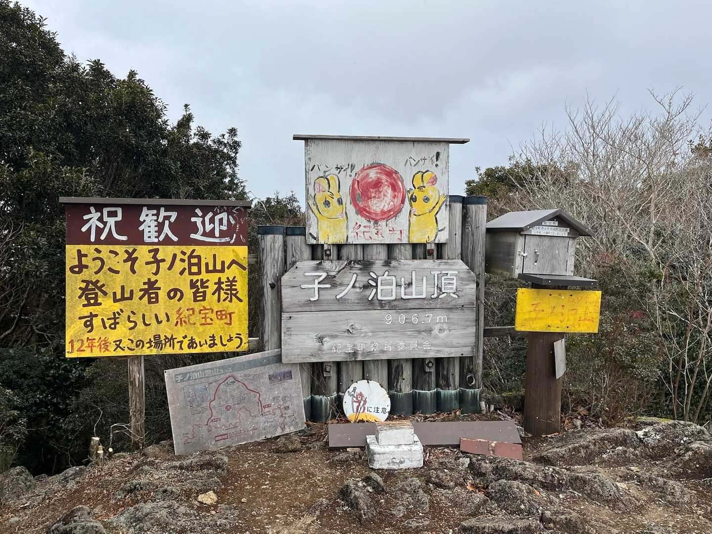 すべて見る関西百名山【子ノ泊山】へ行ってきました。 出発が早朝だったので凍結路回避の為、串本経由の海岸線で向かいました。 小雪チラつく天候の中、汗だくになって登頂しましたが案の定雲に覆われて眺望はなかったです😑 せっかくの南紀方面遠征なので、時間も余裕あったので次を目指しました。