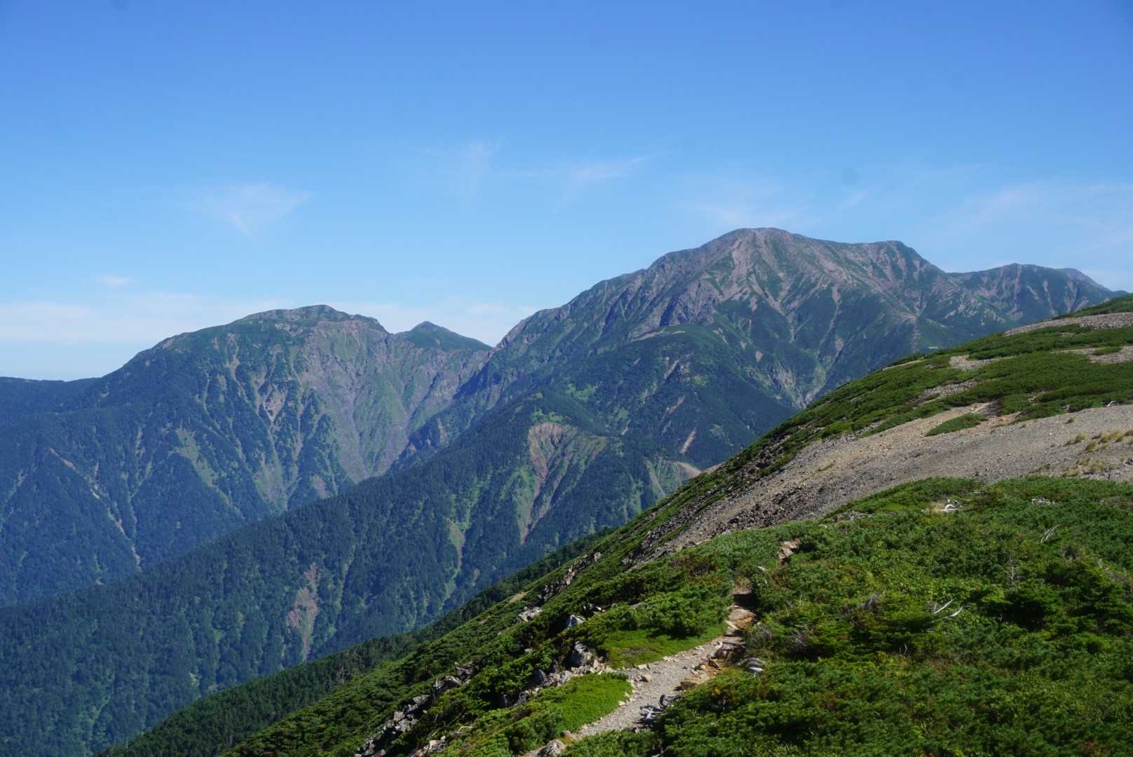 やっと稜線に出たーっ♪\(*ˊᗜˋ*;)/ 奥は中アかな…