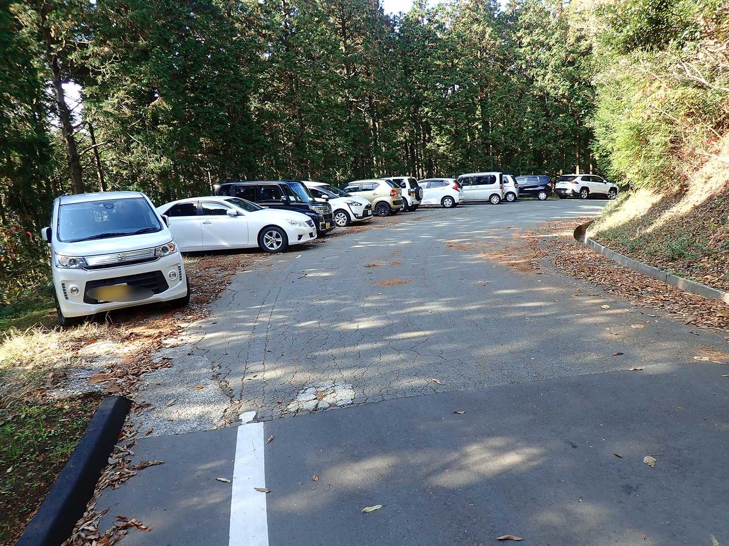 駐車場到着 朝は私の車一台でしたがなんと 満車です。ずっと下の路肩までいっぱいになっていました。