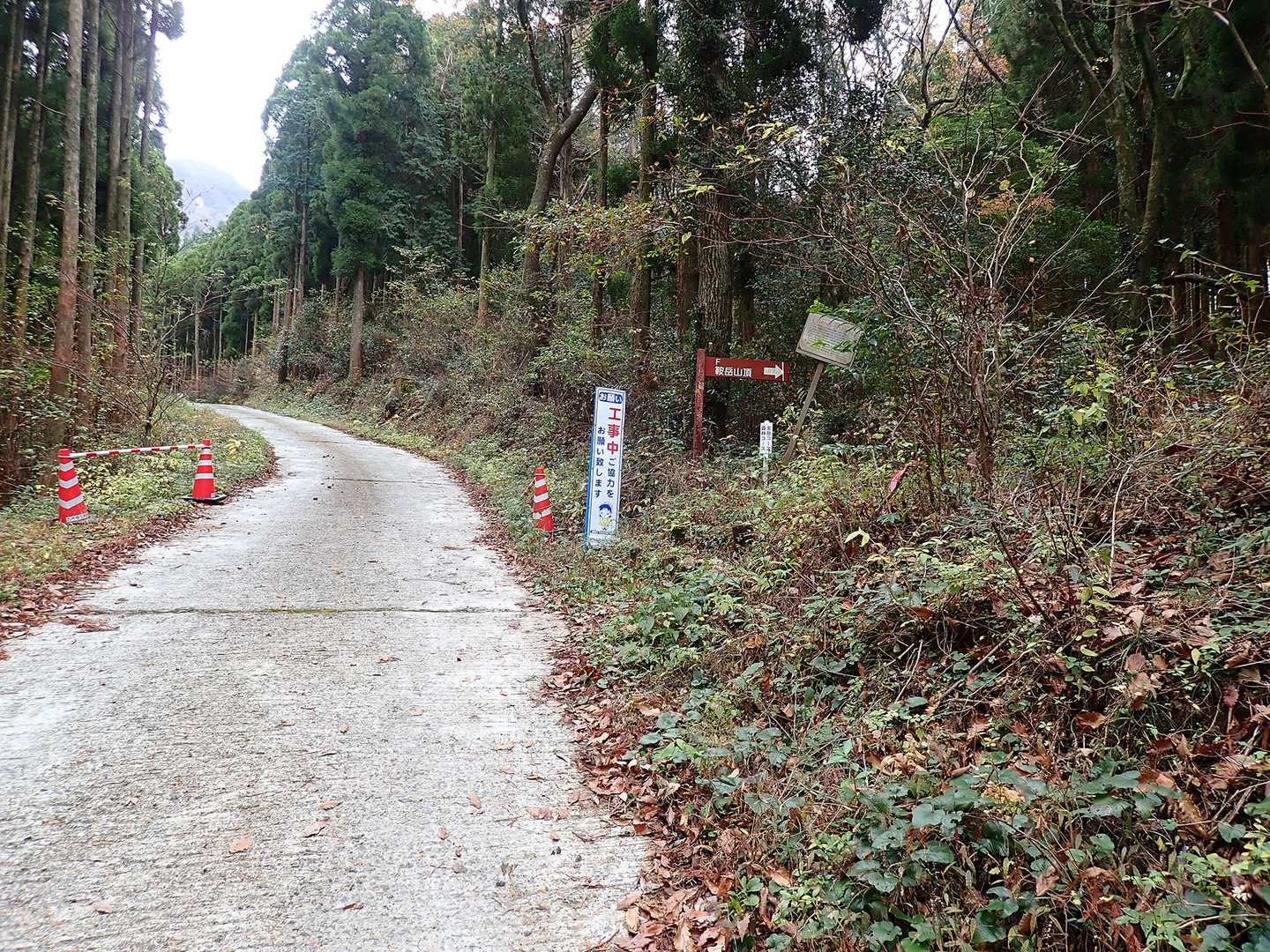 鞍岳林道へ出ました。 無事下山終了。 右奥が以前の取り付き点。