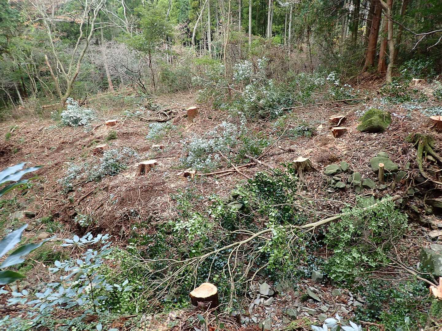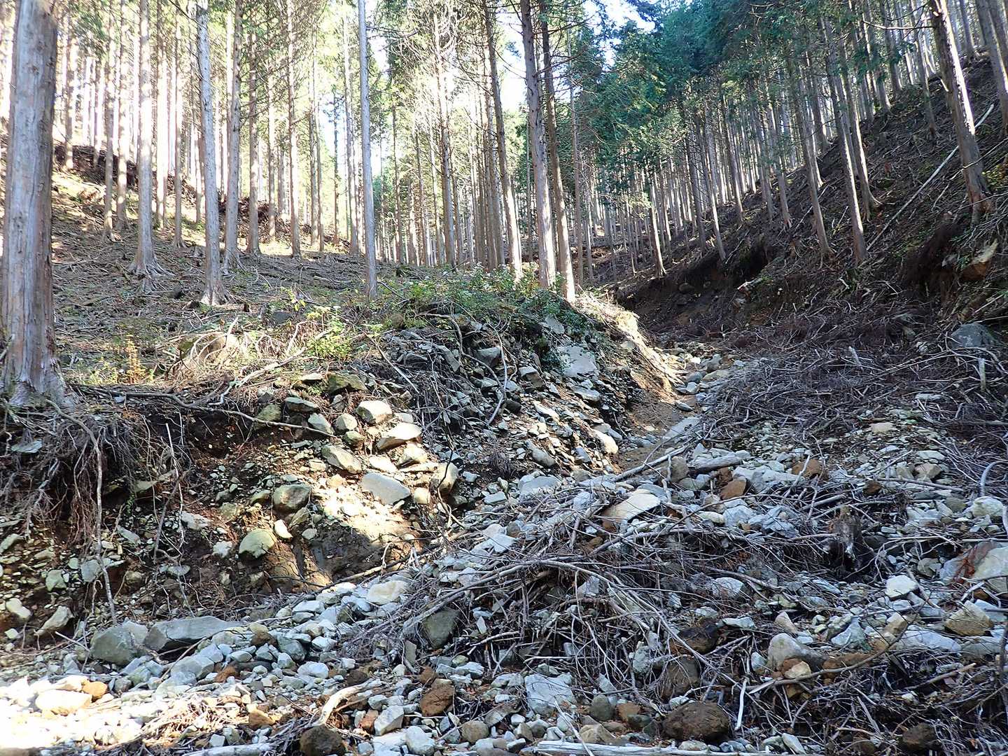 作業道も流れ出た木の枝だらけでした。