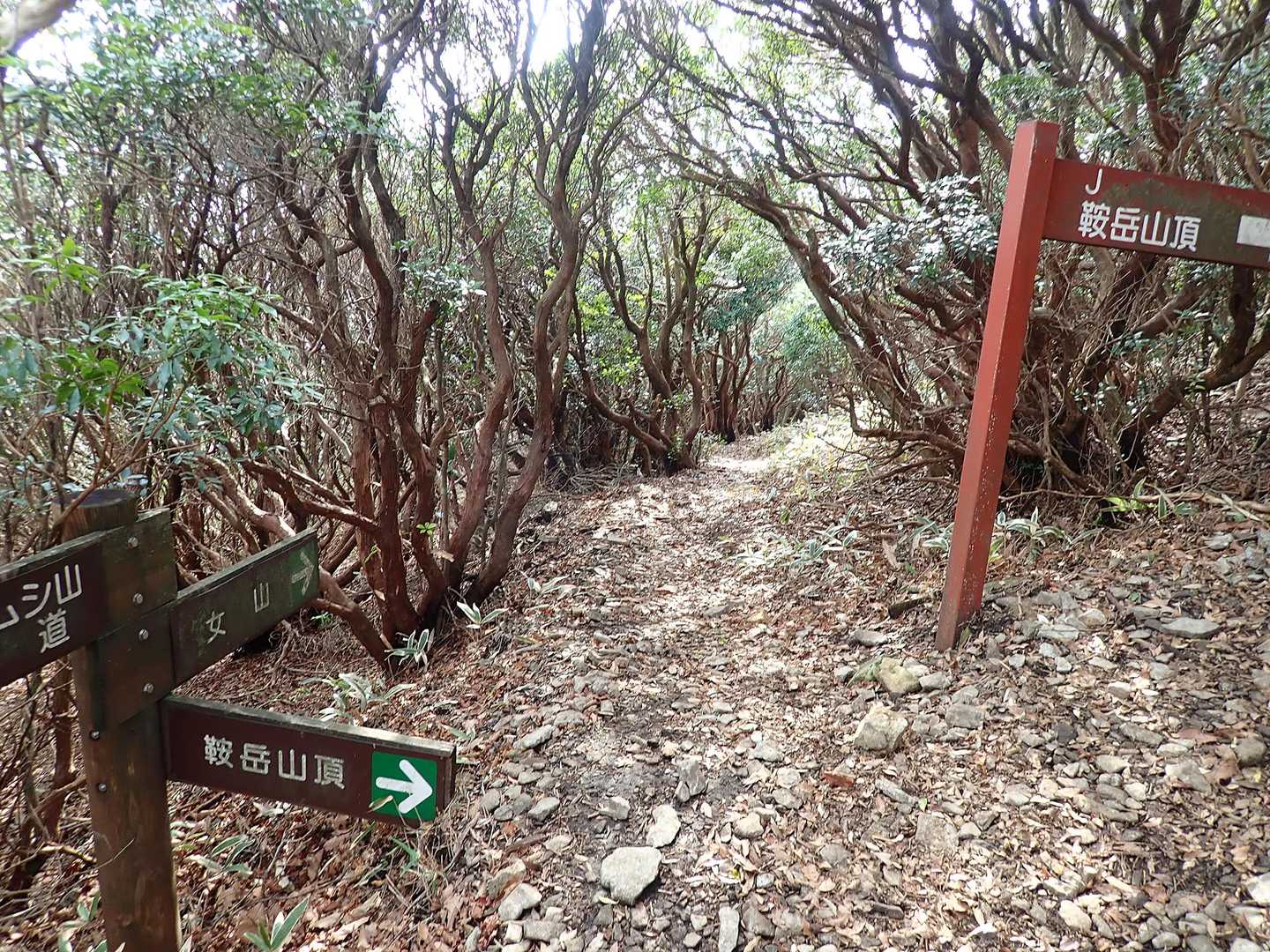 女岳コースとの分岐 ここから南側へと曲がり 獅子ケ峰コースを下山することにしました。 豪雨後歩いてないので少し心配ではありましたが時間も早いので引き返す余裕はたっぷりあります。