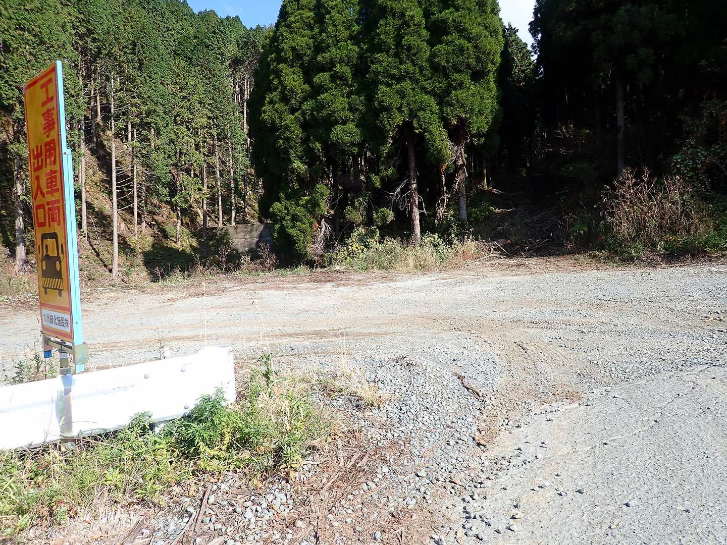 伏石登山口へ向かう途中。 一時作業道ができて通れなくなっていた取り付き点に新しいリボンが下がっていましたので、 ここからテープが繋がっているのかもしれません。