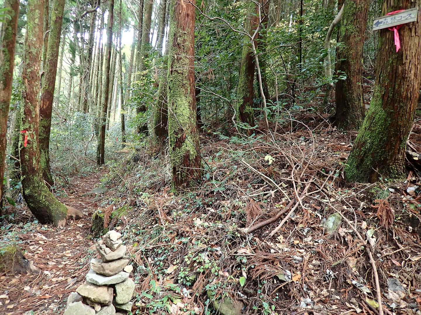 森林コースの途中にケルンあり ここが分岐