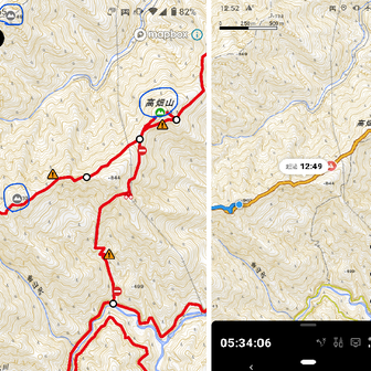 以前より気になっていたのですが、登山前の地図検索画面では山名やランドマークが添付写真左のように表示されていますが、活動中は写真右のように⛰マークもなくなってしまいます。
