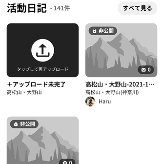 - YAMAPはむさん、お問い合わせいただきありがとうございます。 YAMAPカスタマーサポートです。 問題が解決したとのこと、安心いたしました。 今後ともどうぞよろしくお願いいたします。 和名倉山の住人さん、いつもサポートいただきありがとうございます。 Haruさん、お問い合わせいただきありがとうございます。 YAMAPカスタマーサポートです。 活動日記がアップロード出来ないとのことですね。 ご確認させて頂いたところ、YAMAPアプリのバージョンが古くなっていらっしゃるようです。 お手数ですが、以下手順にて最新バージョンにアップデートをしていただき、活動日記の再アップロードをお試しいただけますでしょうか。 【Androidの場合】 1. アプリを起動 2. マイページ>右上の歯車をタップ 3. [このアプリについて]をタップ 4. [バージョン]をタップ 5. GooglePlayストアに遷移した画面にて、[更新]をタップ アプリのアップデートをお試しいただいても、問題が解決しない場合には、ご連絡いただけますと幸いです。 なお、こちらのトピックは、はむさんが作成されたものとなります。 ご連絡いただく際には、新しいトピックを作成していただく、もしくはsupport@yamap.co.jp宛にご連絡いただきますようお願いいたします。 ※お問い合わせ番号「64172」の記載も併せてお願いいたします。 どうぞよろしくお願いいたします。2022.01.11(火) 02:29