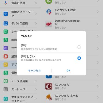 - 和名倉山の住人https://hermitcrab.mixh.jp/huawei-mediapad-m3-battery/ huaweiの場合、この辺でしょうかね。(最適化を無視するアプリとして、yamapを許可する。)2022.06.23(木) 17:56