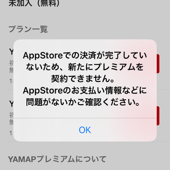 - YAMAPryotaさん、お問い合わせいただきありがとうございます。 YAMAPカスタマーサポートです。 該当のメッセージはAppStoreで正しく決済が行われなかった場合の表記となりますが、詳しくお調べしたところ以下の理由によりエラーになっているようです。 「課金エラー:顧客の支払い情報が有効でなくなったなど」 大変恐れ入りますが、YAMAP側ではお引き落とし先などの状況をご確認することができませんので、以下のページを参考にお支払いに関する設定をご確認いただけますと幸いです。 https://support.apple.com/ja-jp/HT201266 なお、名義変更された、とのことですが、 端末に以前のAppleIDと別なIDでログインされている可能性はございませんでしょうか。 その場合、以前のAppleIDでログインをし直していただいた上で、決済をしていただく必要がございますのでご確認いただきますようお願いいたします。 その他、AppleIDのご確認や決済に関してご不明な点がございましたら、上記ページに記載のあるAppleのサポート窓口までお問い合わせいただきますようお願いいたします。 その他、ご不明な点がございましたら、お気軽にご連絡ください。 どうぞよろしくお願いします。2020.09.08(火) 02:03