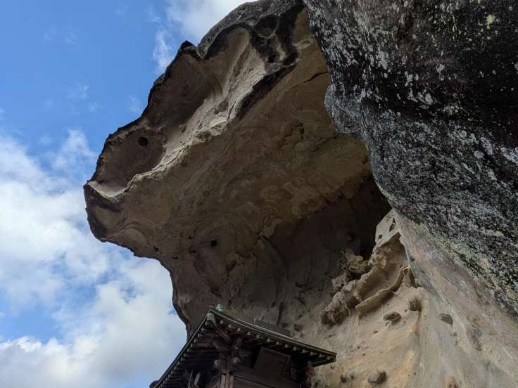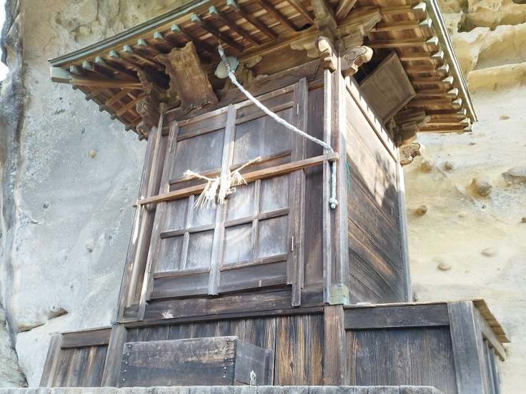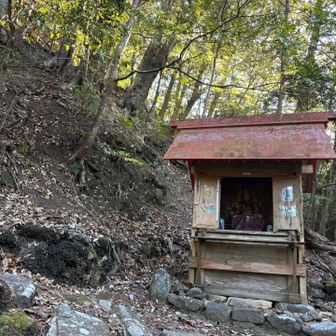 鐘掛 ☝️今回の核心部 この祠の右上をクライミングのように、よじ登っていくので迂回するかどうか、しばし相談