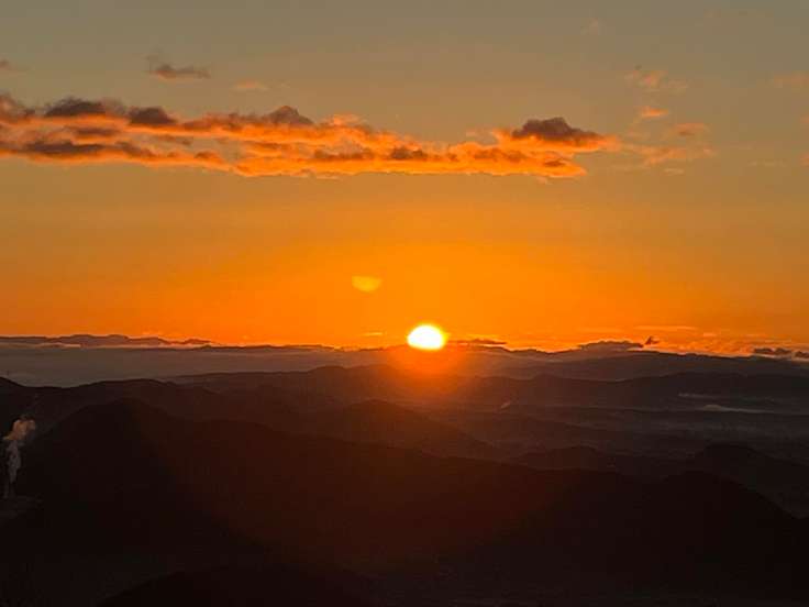 山頂到着〜🙌🙌🙌 誰もいなくて、今年もmission達成🎉🎉🎉 展望台下に設置してある温度計は-1度を指してる〜😅😅😅