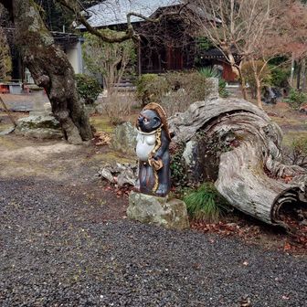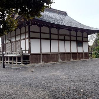 東城寺に到着、雨は上がっています。 寺の本尊は薬師如来でした。 いつも唱えるご霊咒が書かれていたました。 真言宗のお寺でした。 正面の写真を撮り忘れたのでとりあえず裏側の一枚。