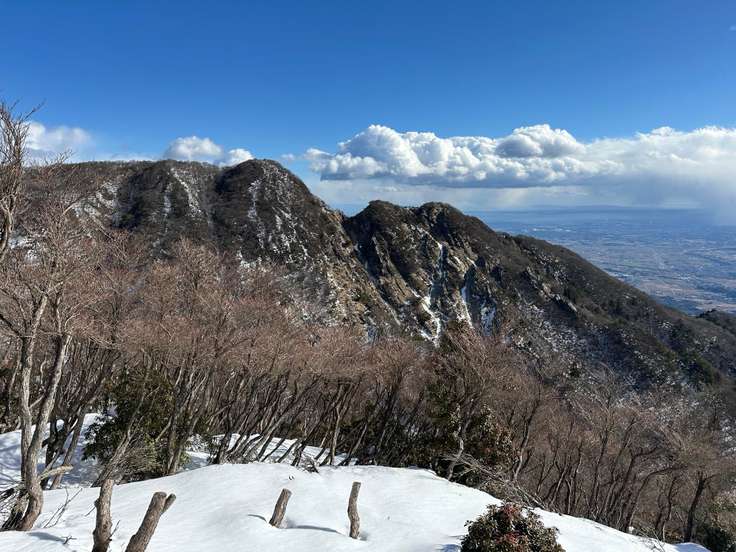 雪の稜線の釈迦ヶ岳・三池岳周回